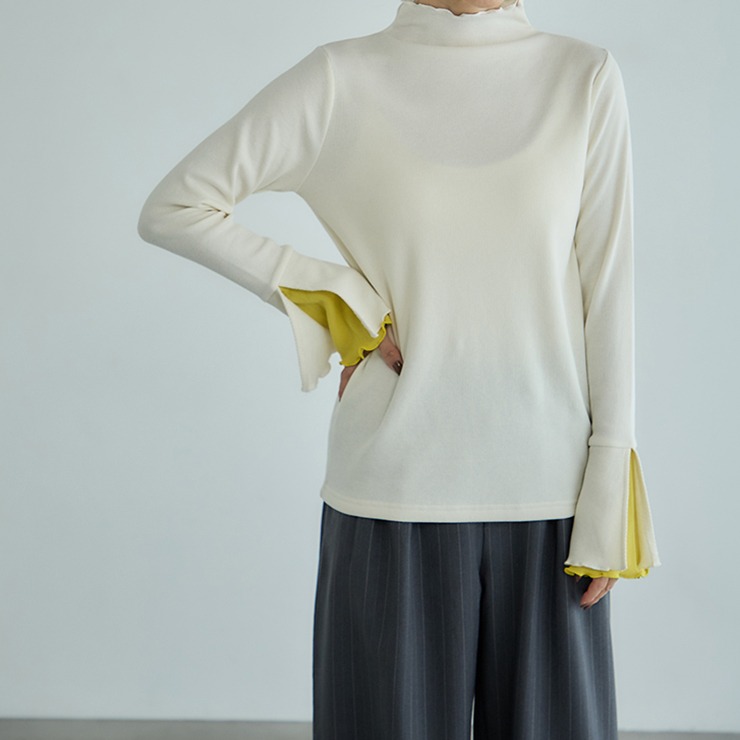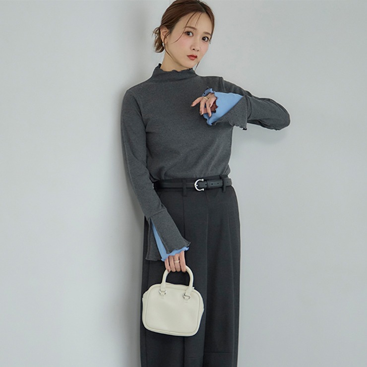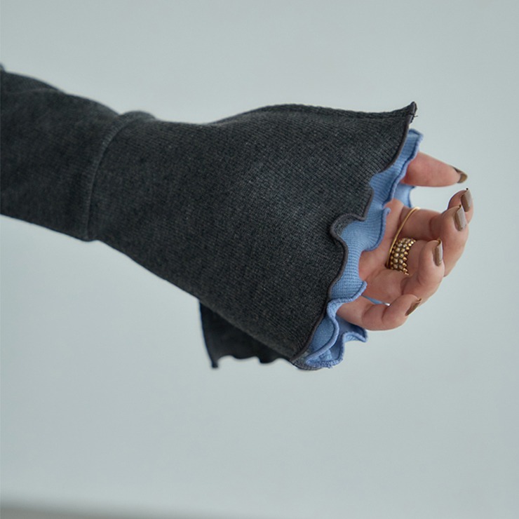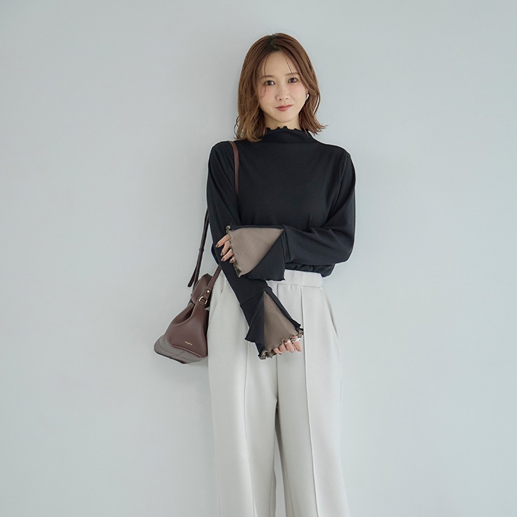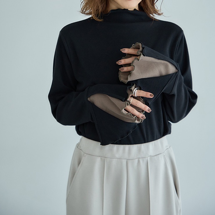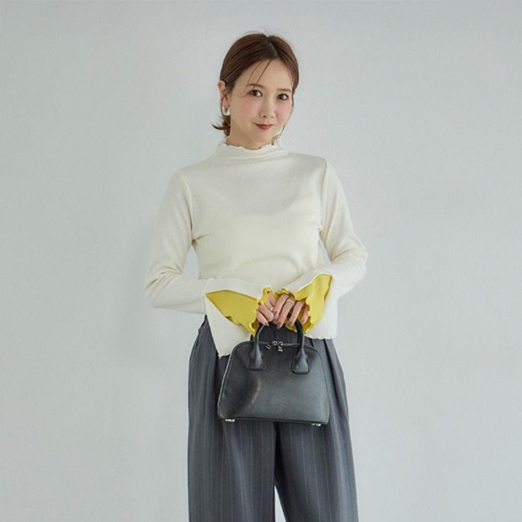 袖口が動くたびにさりげなく覗く配色が魅力のトップスです。シンプルなボトムスを合わせるだけで、洗練されたスタイルが完成します。柔らかな素材で着心地も快適。オンにもオフにも活躍する一枚です。