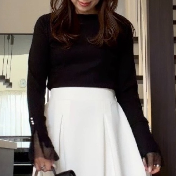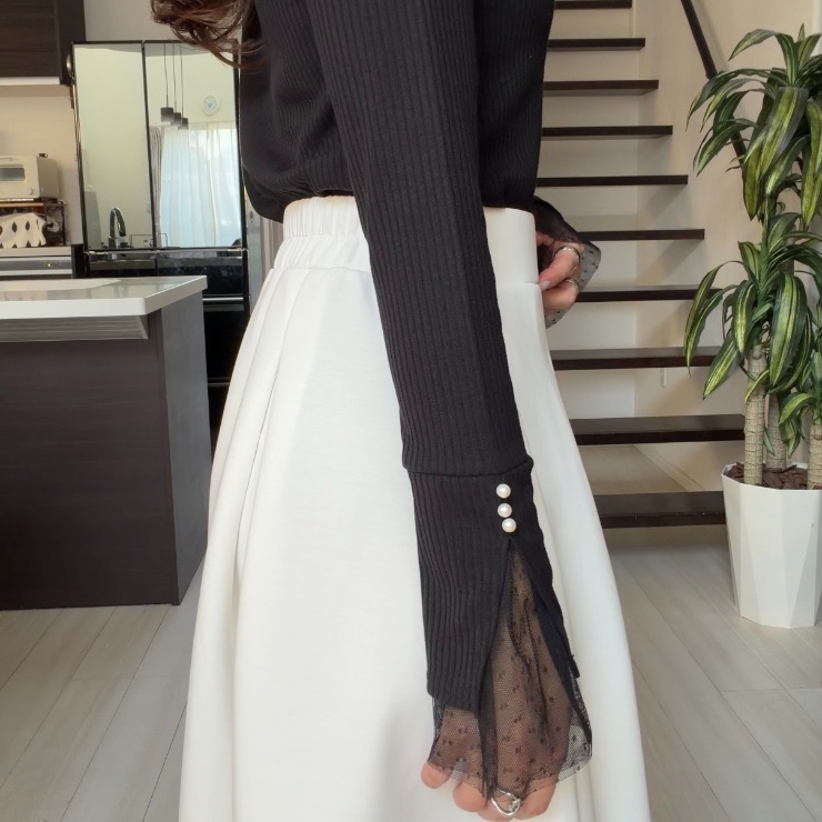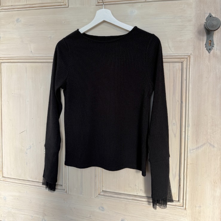 袖口にチュールの切り替えがあるトップスです。