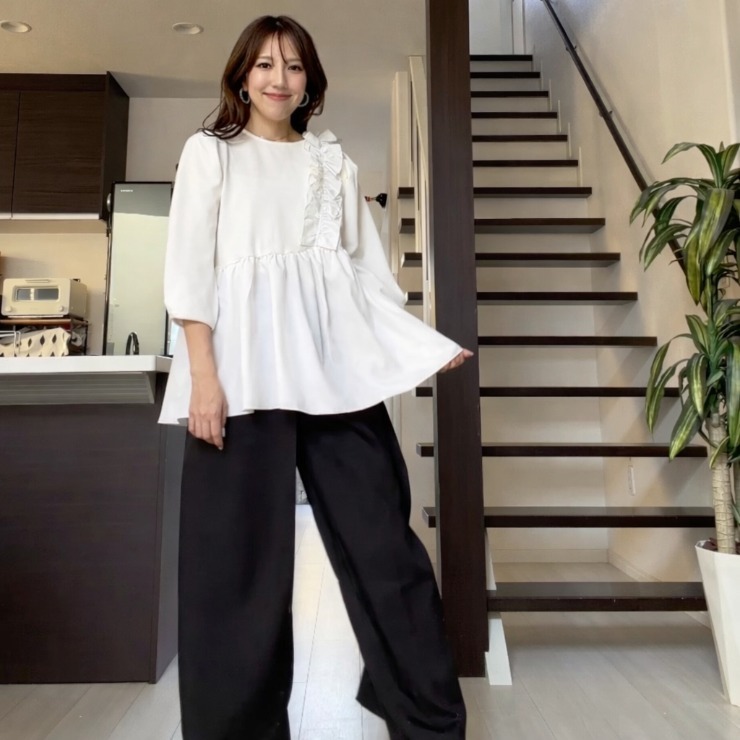 ショートパンツやフレアデニム、スラックスなど様々なボトムスと相性がいいアイテムです。