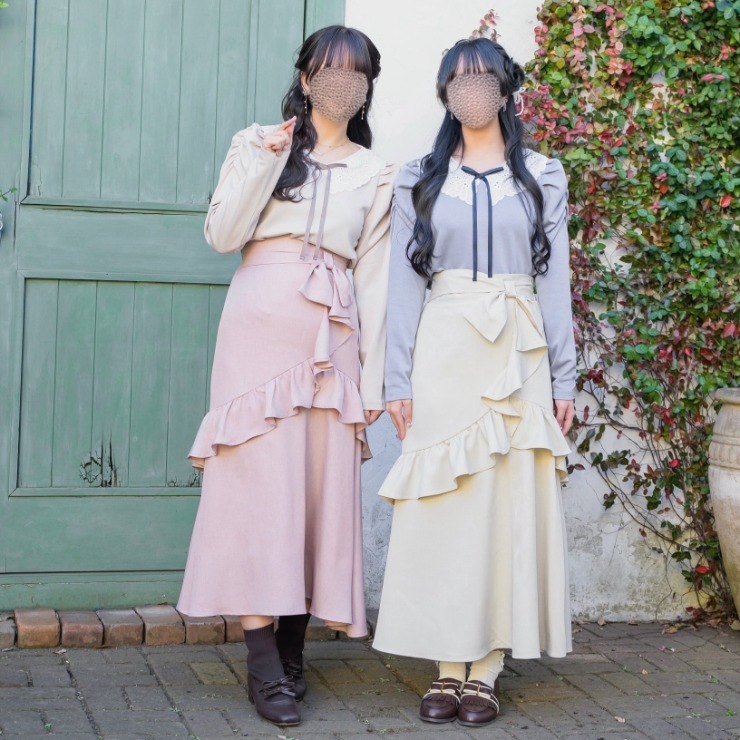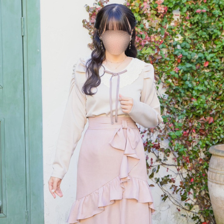 くすみピンクとサックスの2色展開で、女性らしい着こなしができるアイテムです。
