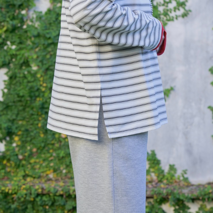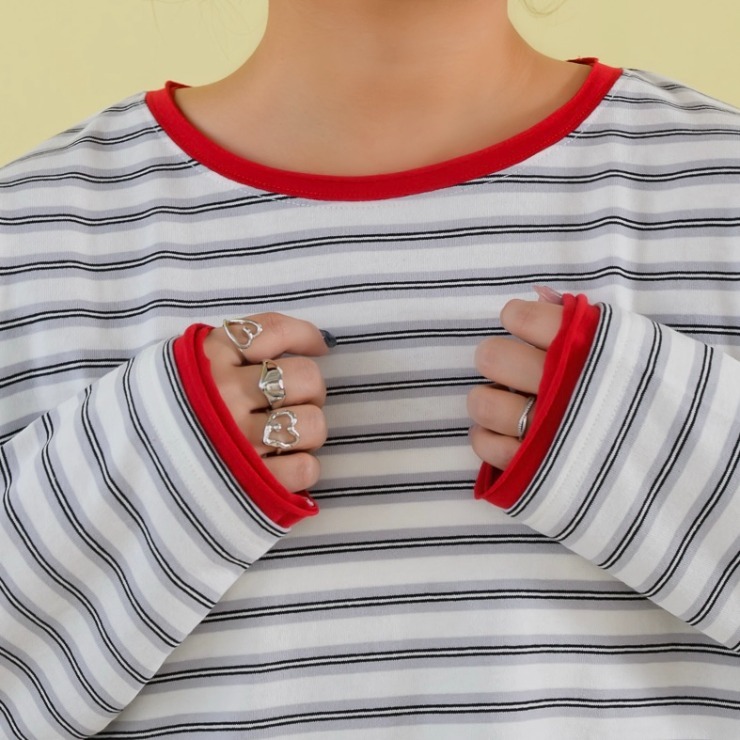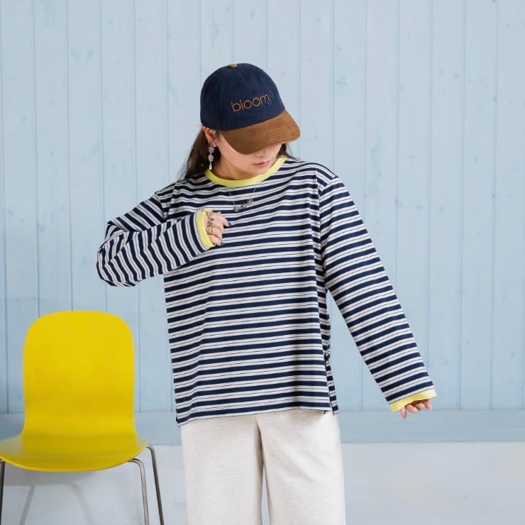 "細部までこだわりぎゅっとレイヤード風ボーダートップス"
