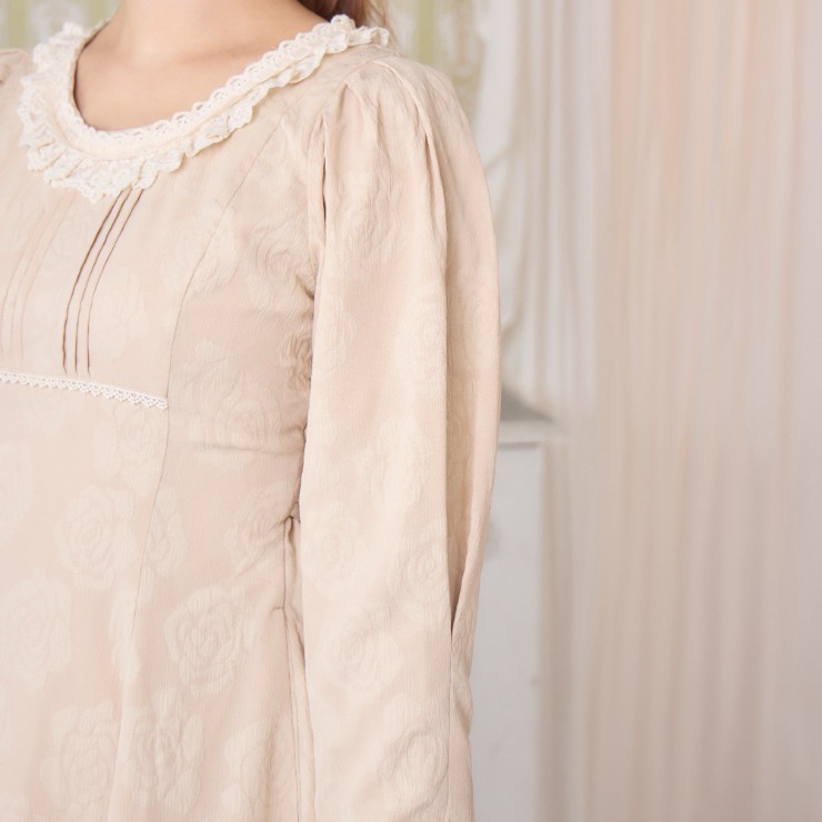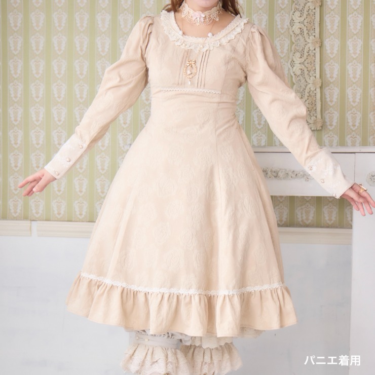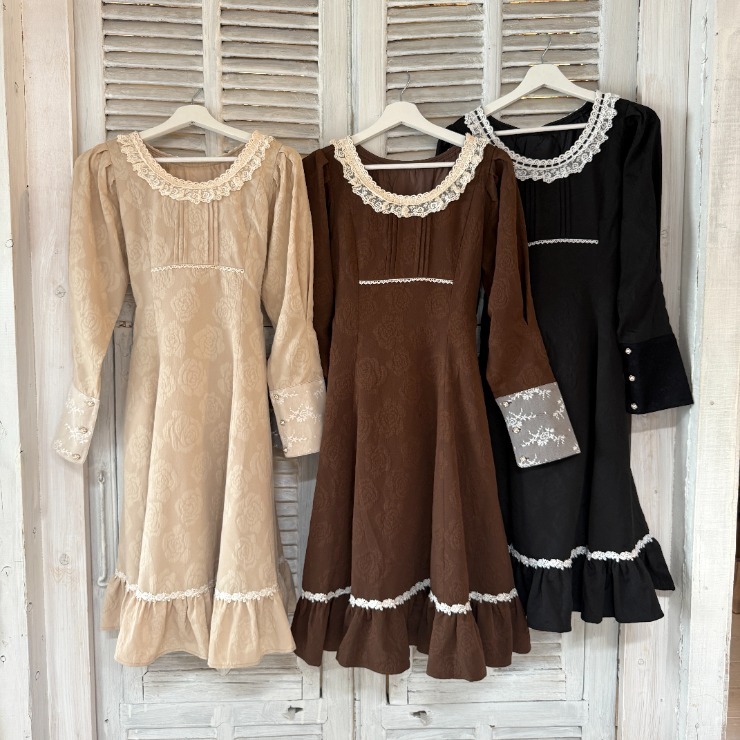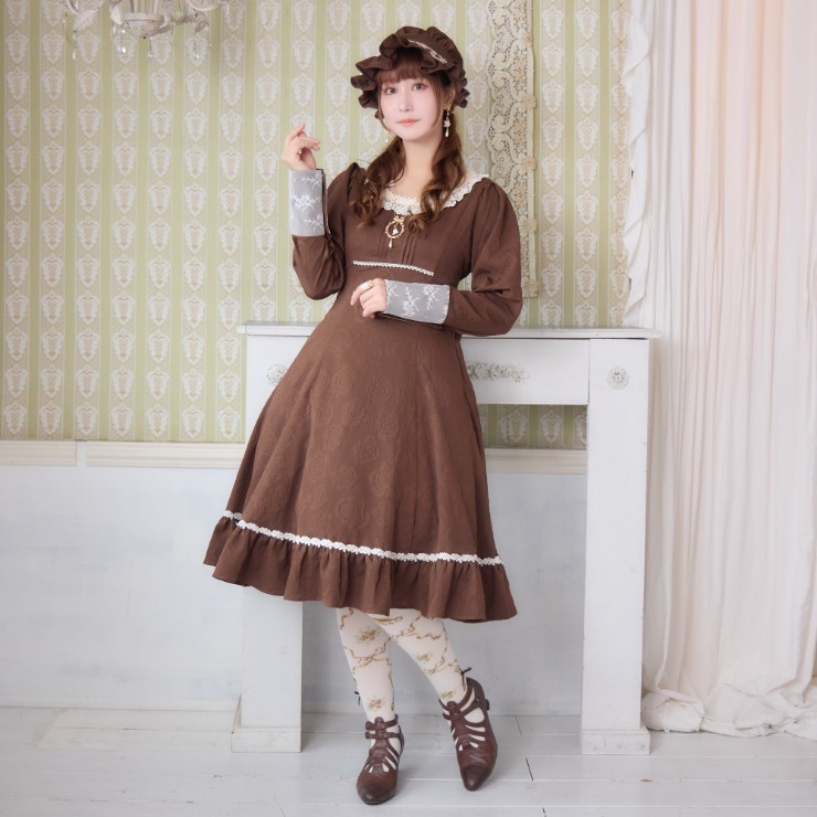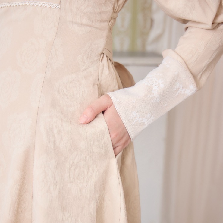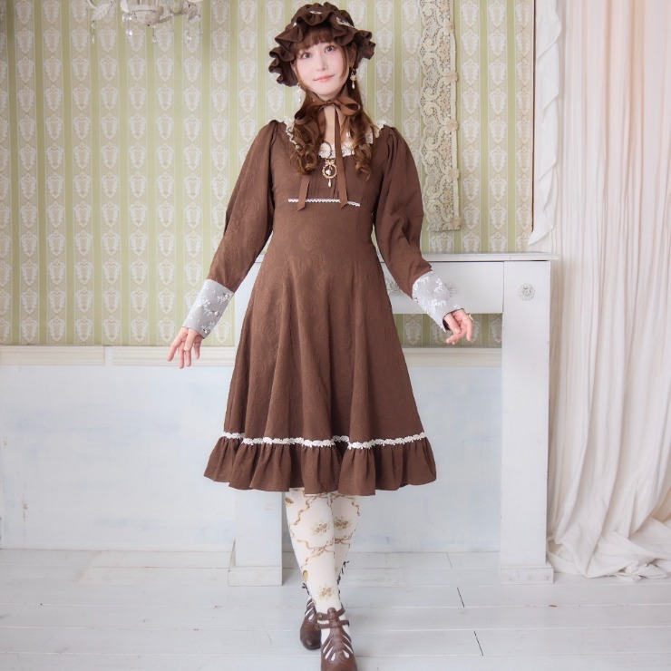 クラシカルな雰囲気のある配色と花柄ジャカード生地がかわいいワンピースです!