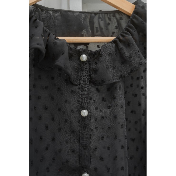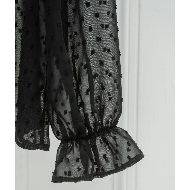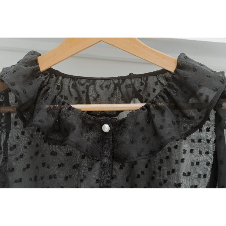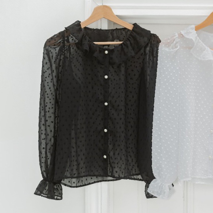 首元のフリルがお顔周りを華やかにしてくれる&小顔効果にも◎