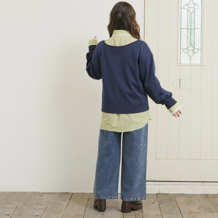 レディース レイヤード風ストライプシャツ(Taiyou)