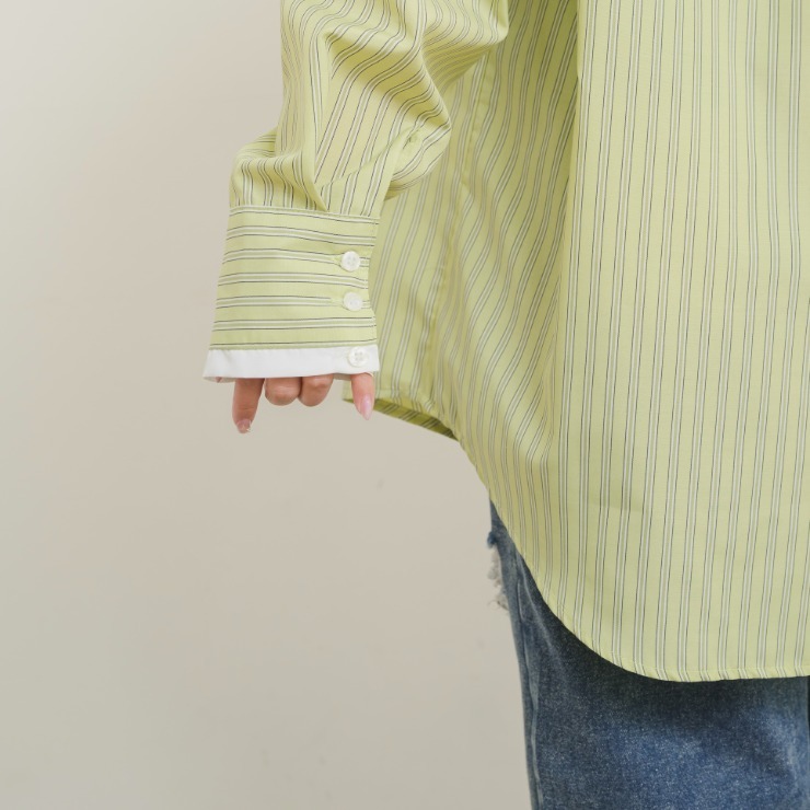 "一枚で垢抜ける、レイヤード風ストライプシャツ"