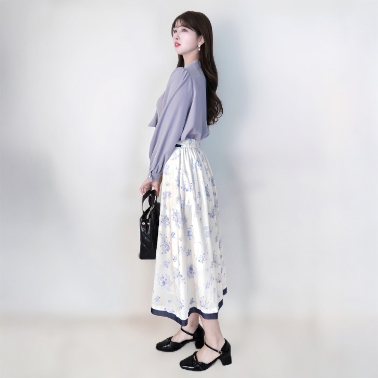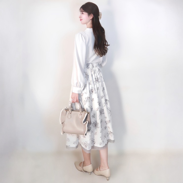 程よいボリューム袖が女性らしさを引き立て、1枚で華やかな印象に。