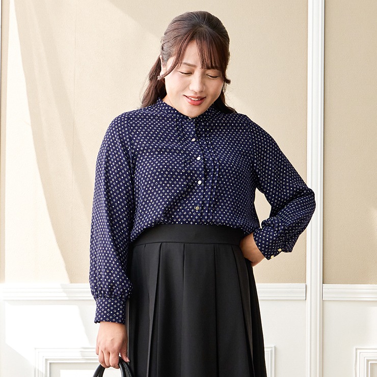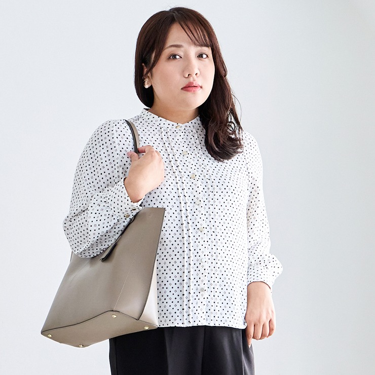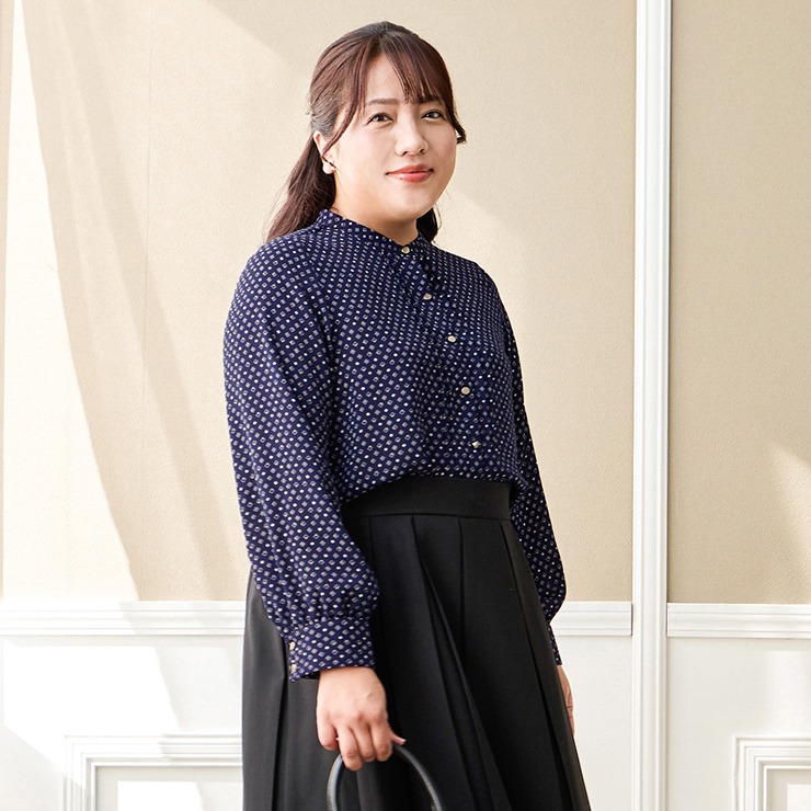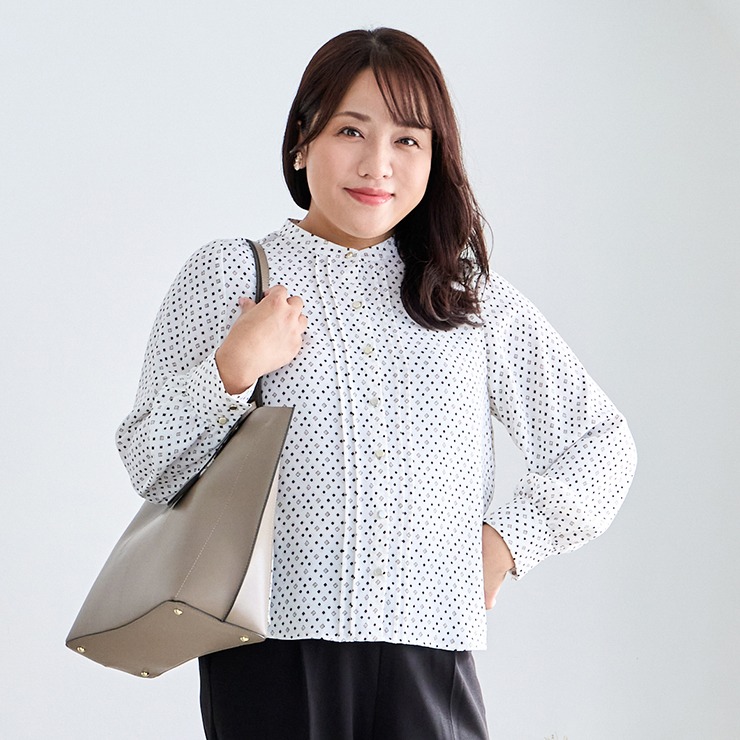 オンオフどちらでも着まわせるデザインのブラウスです。