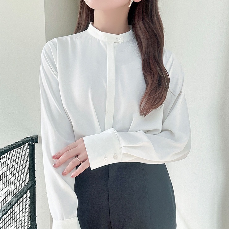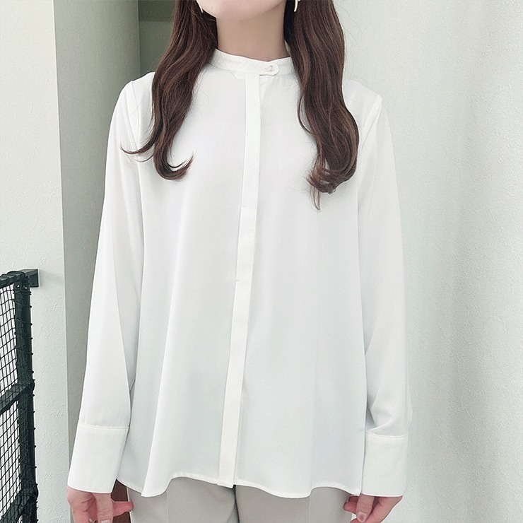 第一ボタンがアシンメトリーになっているデザインがポイント。