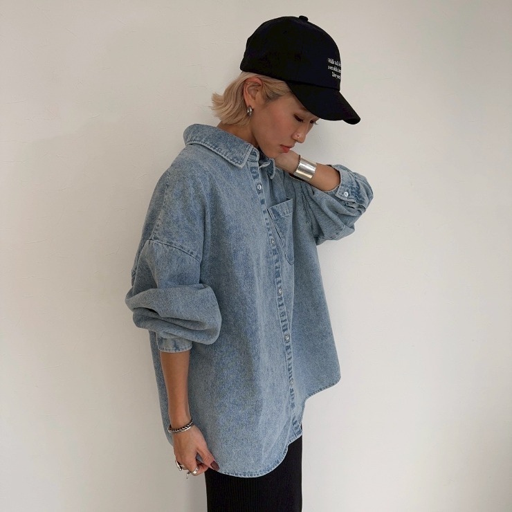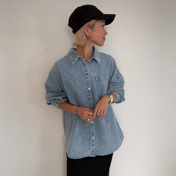 レディース ビッグシルエットケミカルデニムシャツ(anna)