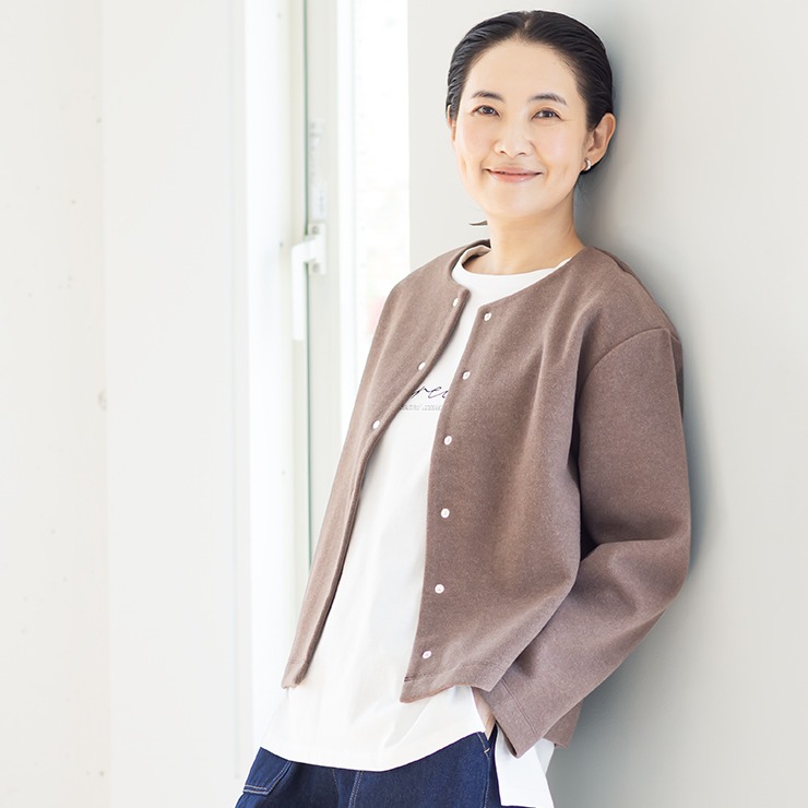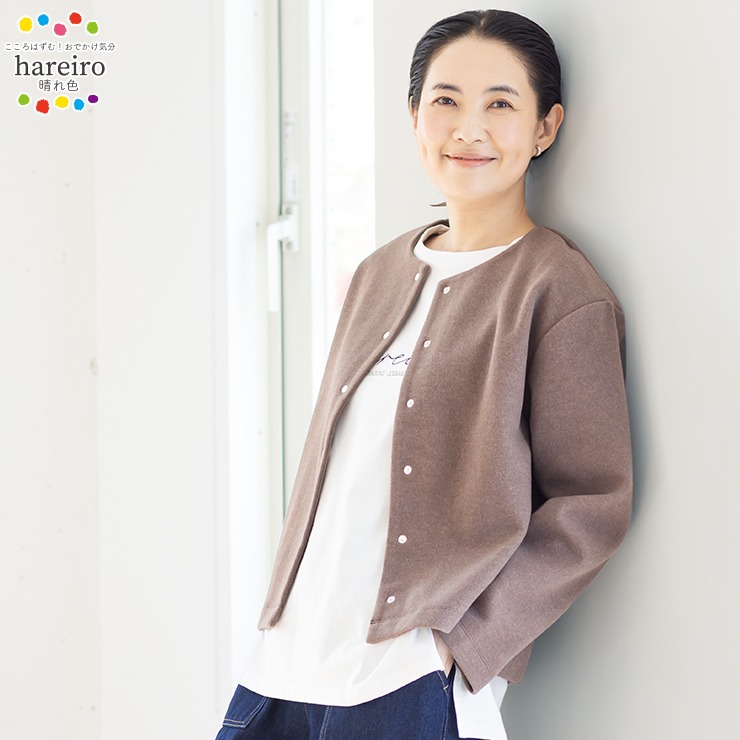 ウールのような質感が魅力の、上品な印象を与えるカットソージャケットです。