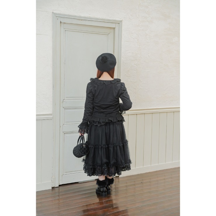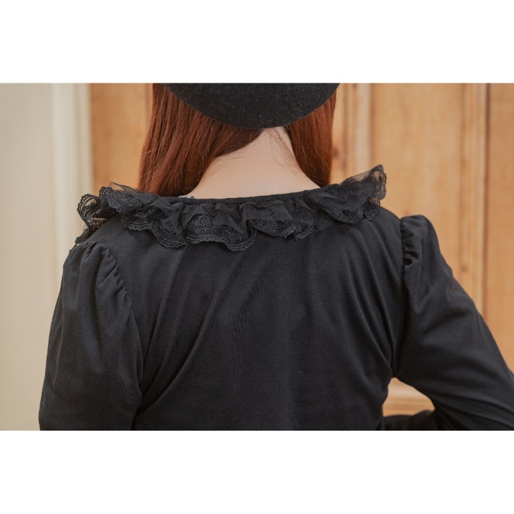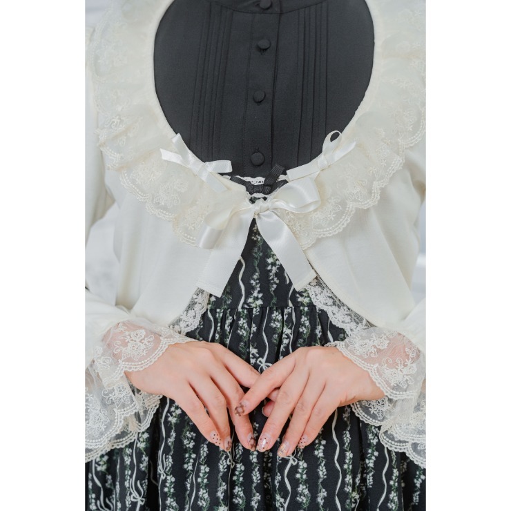 襟周りの大胆なレースやリボン使いが可愛い商品です。