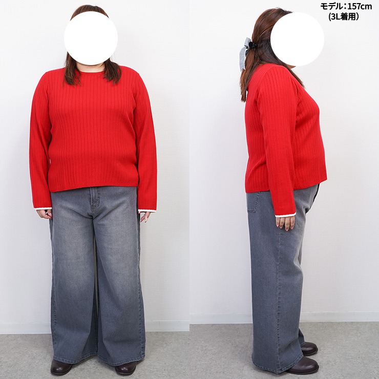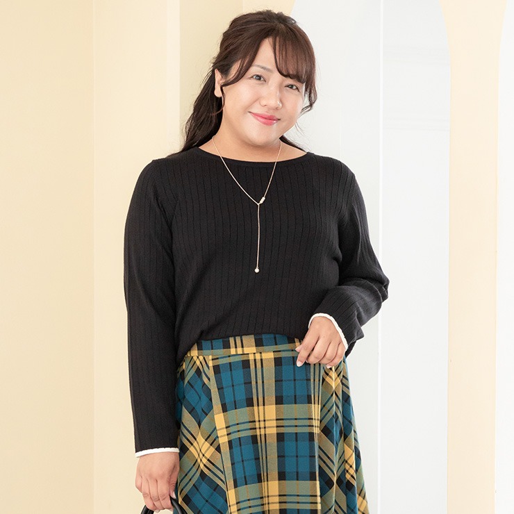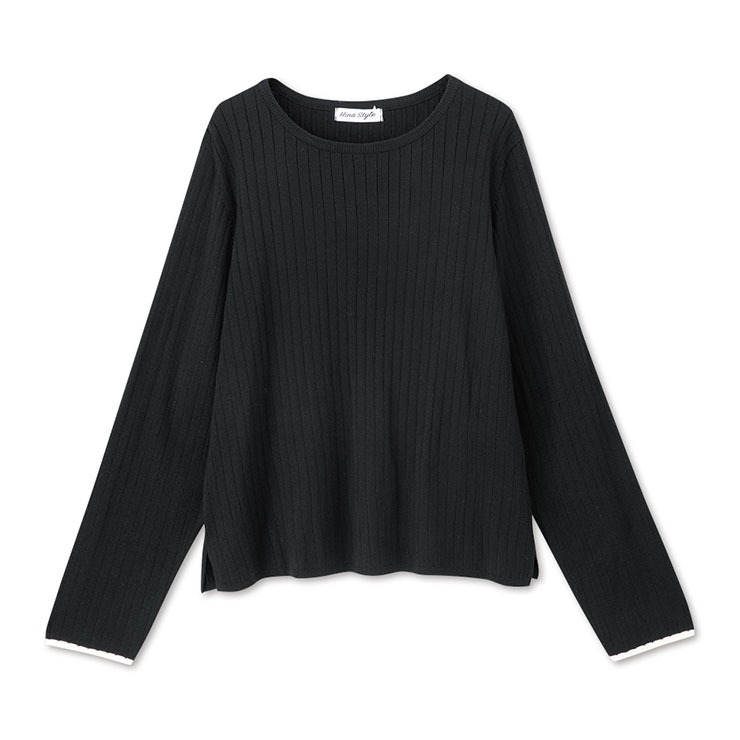 ピタッとしないリブの編地で体に沿わずすっきり、縦ラインを強調してくれます◎