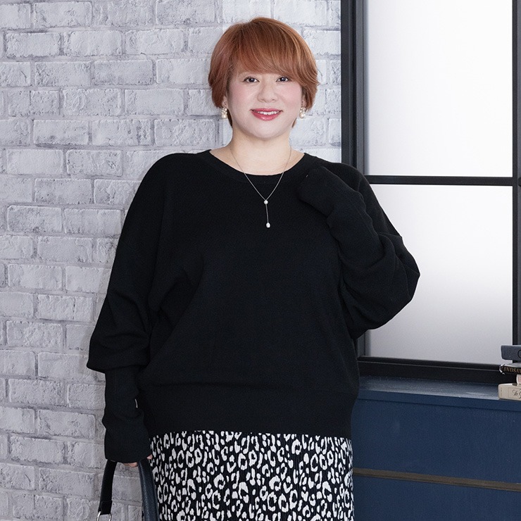 しっかりした編地感なので体のラインを拾いにくいのもうれしいポイント。