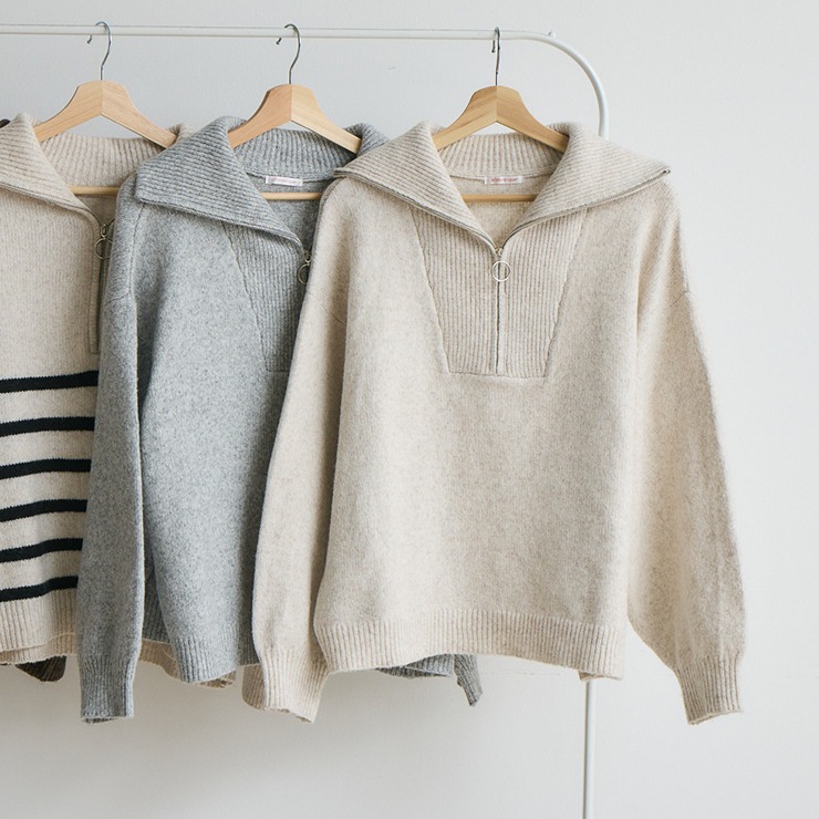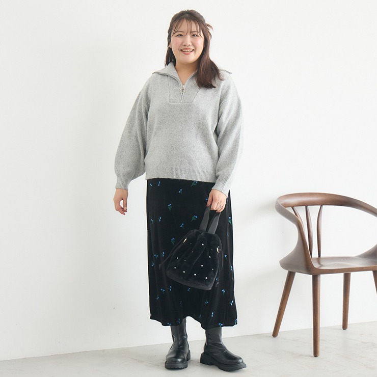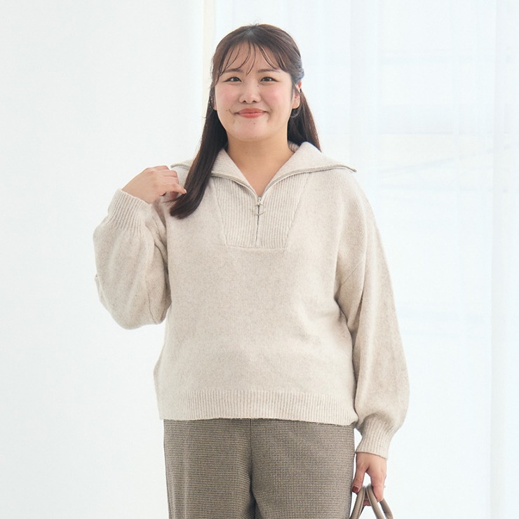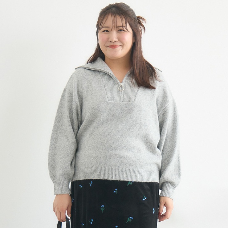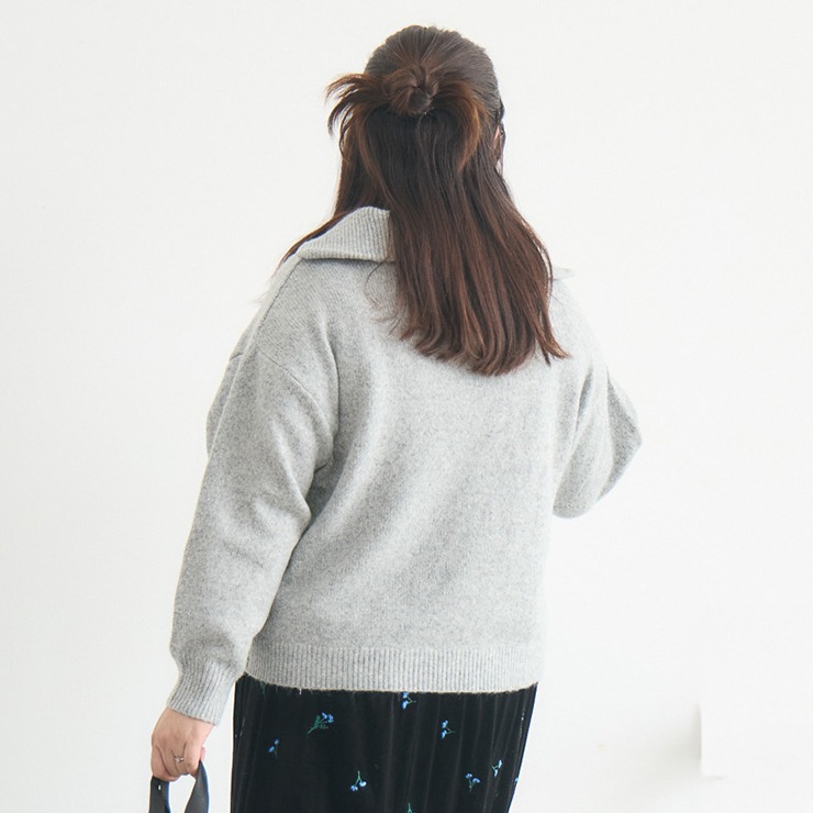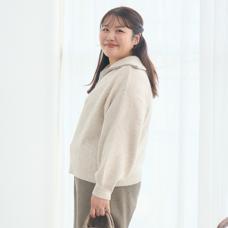 大きめ襟がポイントのハーフジップニットプルオーバー♪ ジップの開け閉めで着こなしのアレンジが楽しめる万能デザイン 柔らかなニット素材で着心地も快適、ロングシーズン活躍♪ デニムやスカートと合わせて大人のラフカジュアルコーデに◎