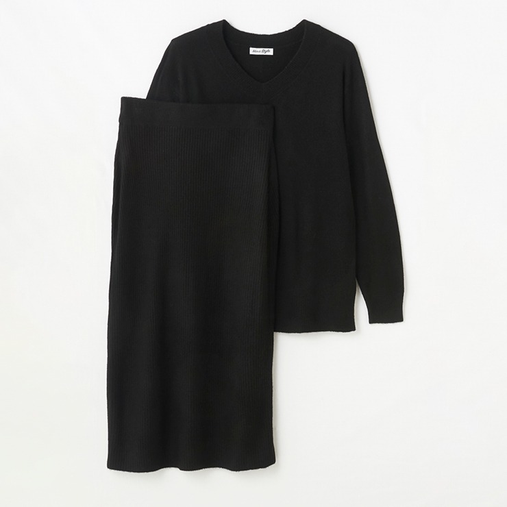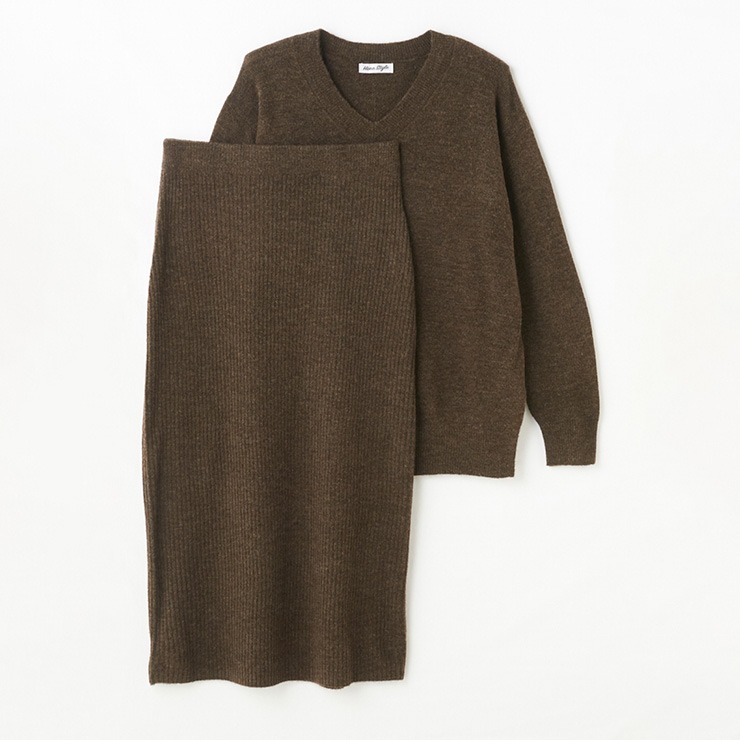 Vネックニットとナロースカートのセットアップで大人の抜け感を演出♪
