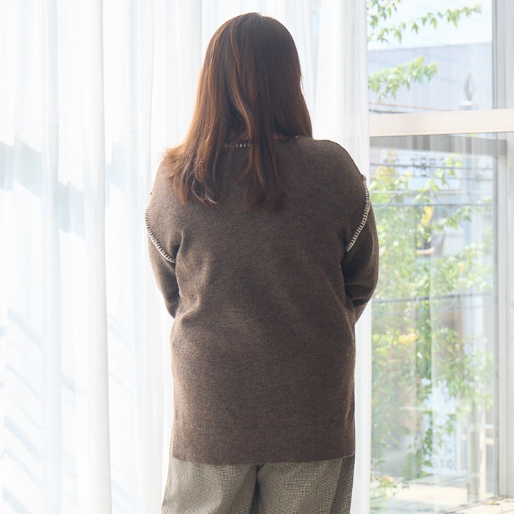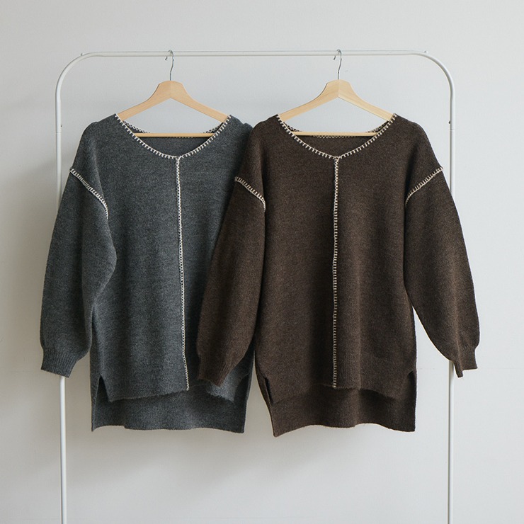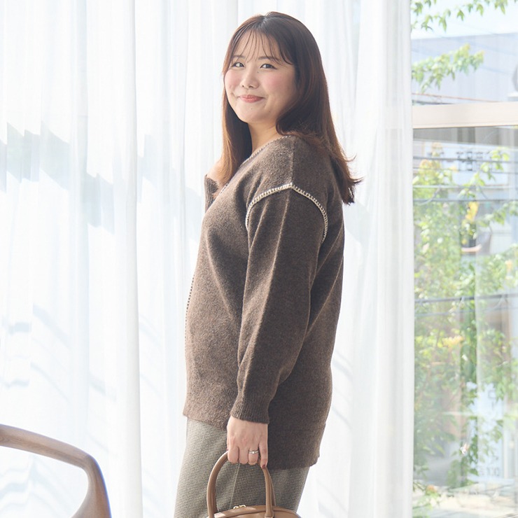 Vネックと配色ステッチがシンプルながらもこなれた印象の1枚♪