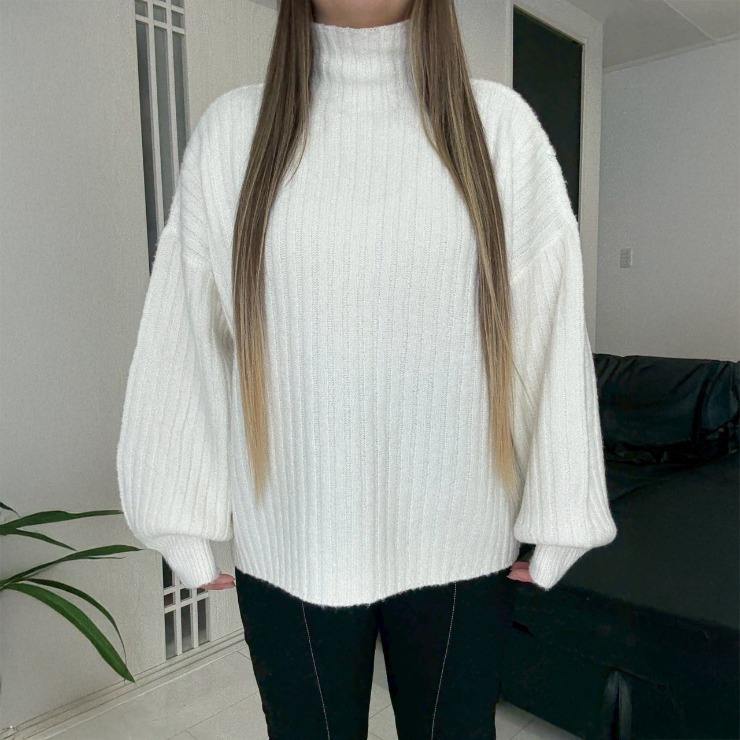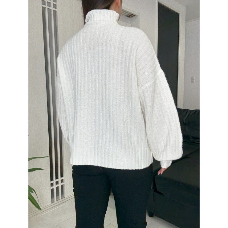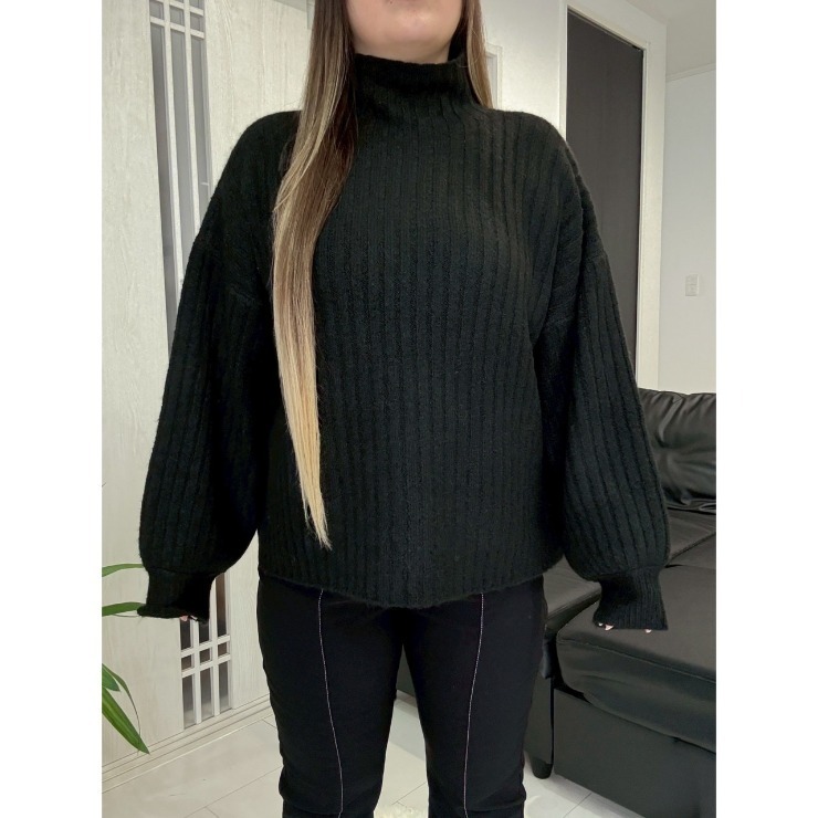 丸みのある袖と程よいショート丈が、スタイルアップを叶えるボトルネックトップスです。