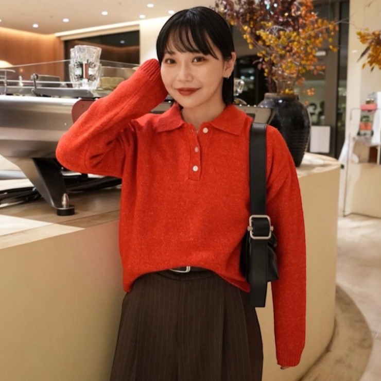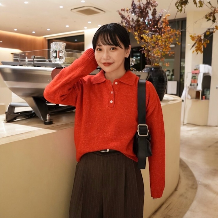 レディース ポロ襟ニットプルオーバー(オクユウカ)