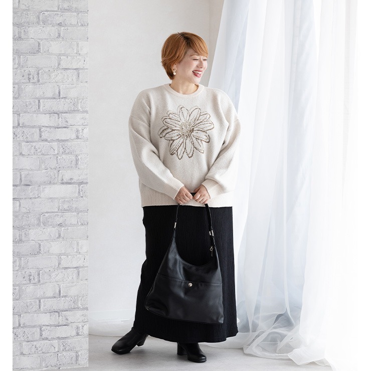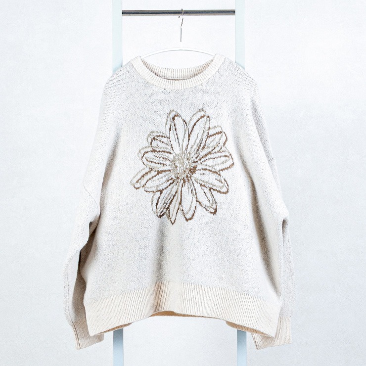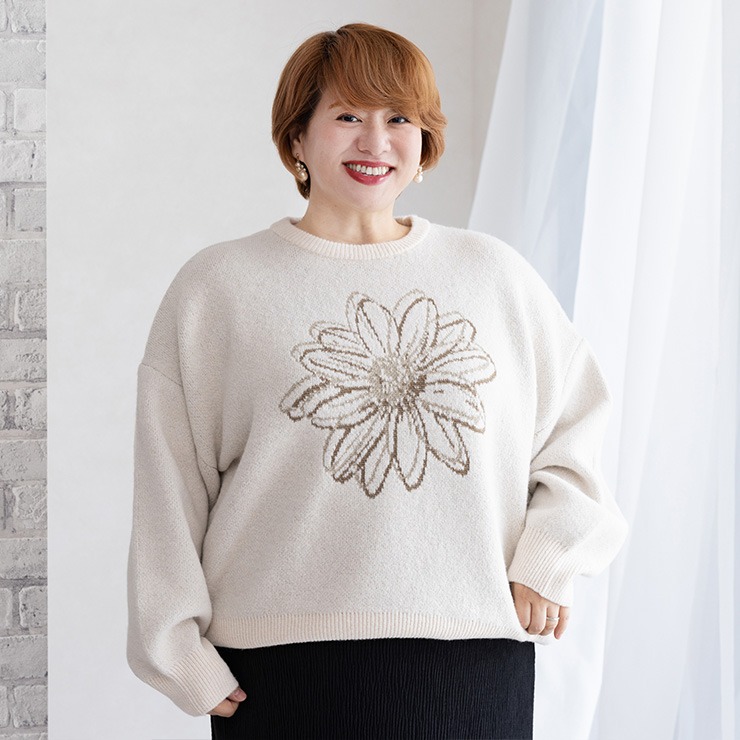 MIX感のある柔らかな素材感が大胆な花柄でも子供っぽくなりすぎず大人でも着やすい1枚に仕上げています。