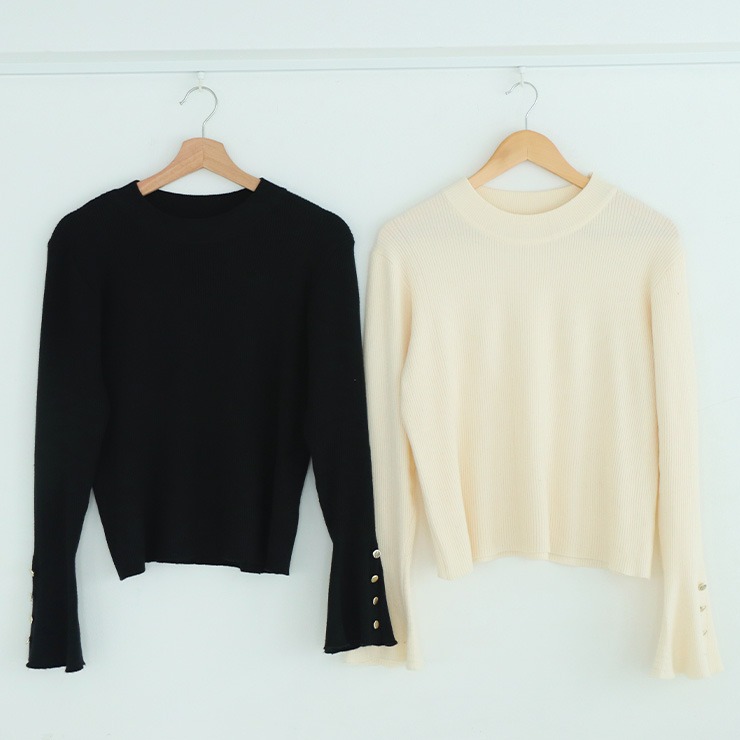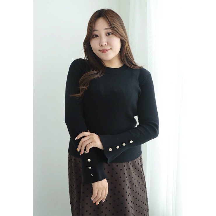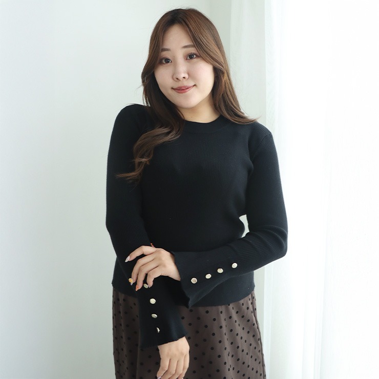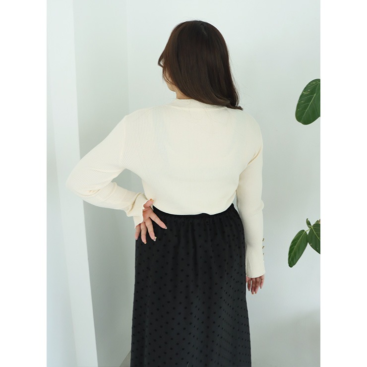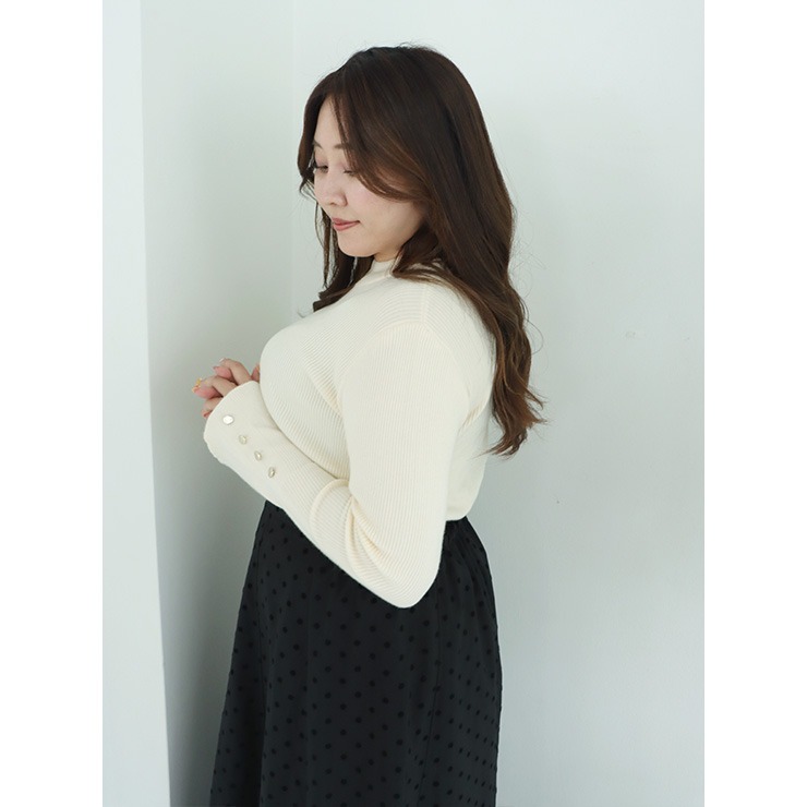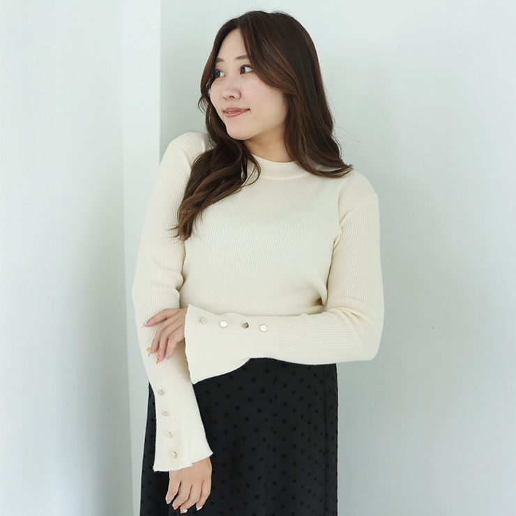 すっきりとしたシルエットが女性らしさを引き立てるリブニットトップス。
