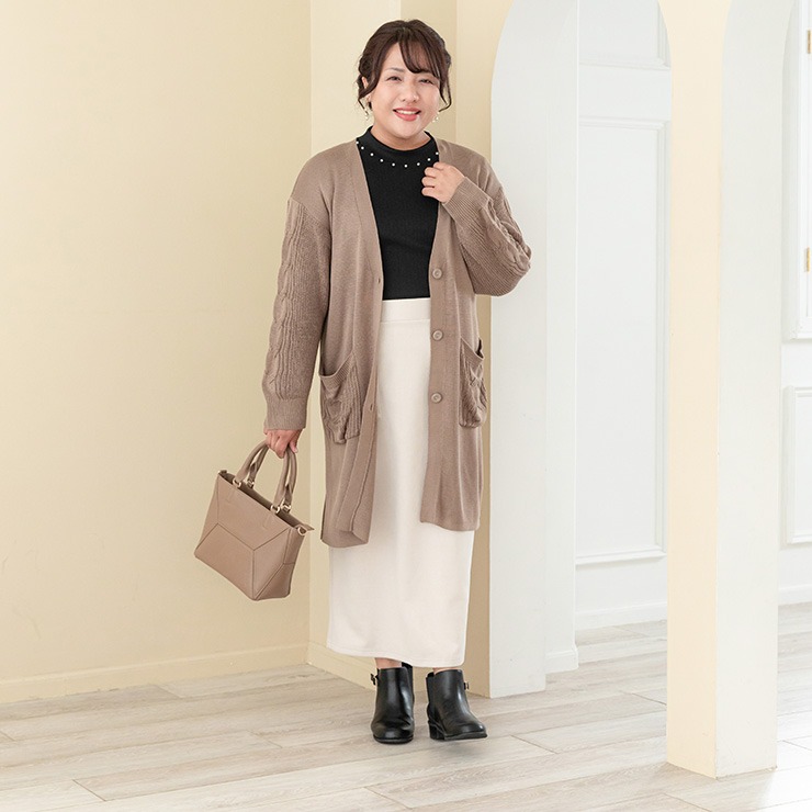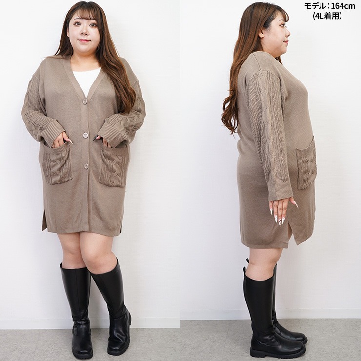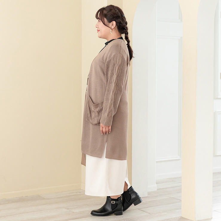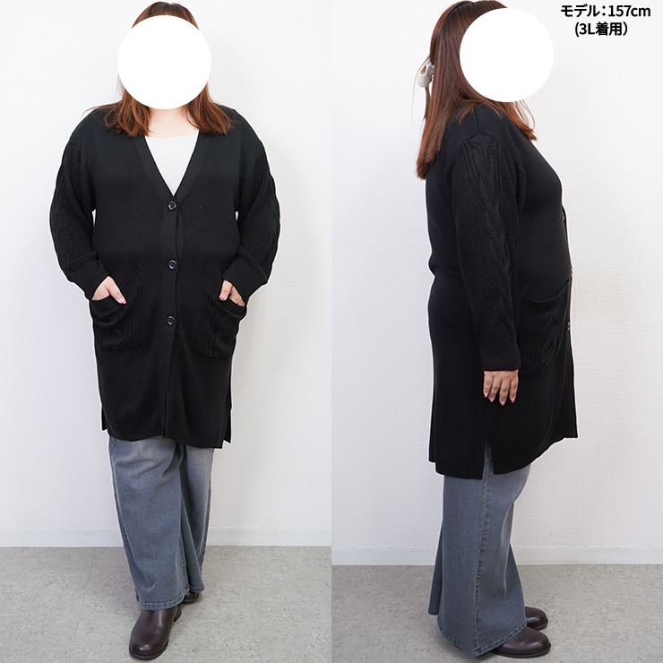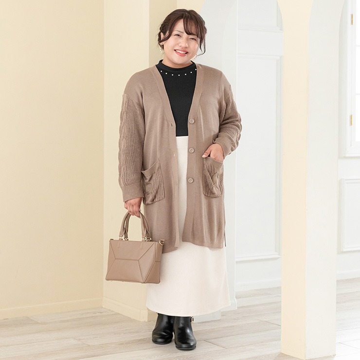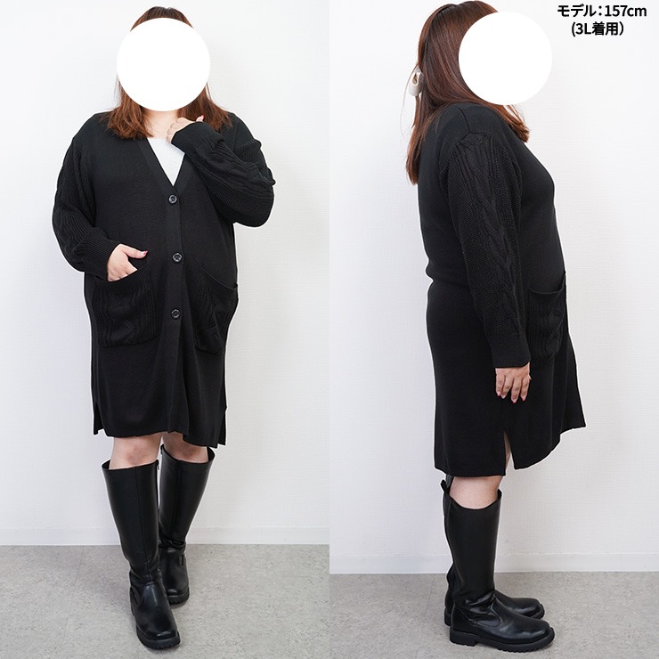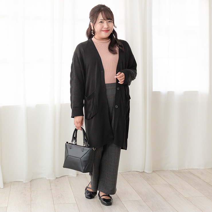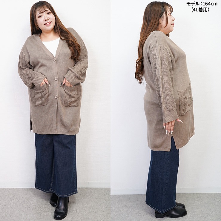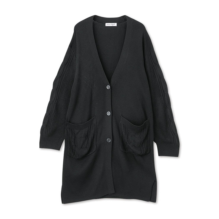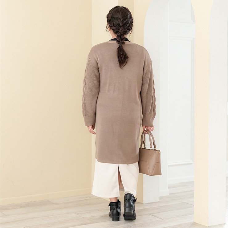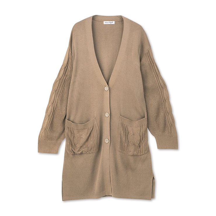 袖の編地切り替えデザインがおしゃれなすっきり見えカーディガンです◎