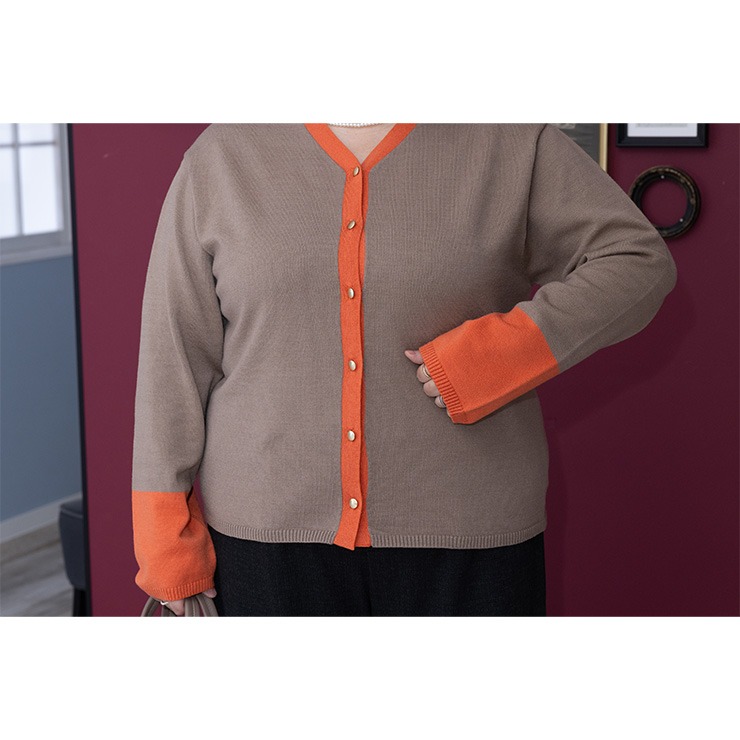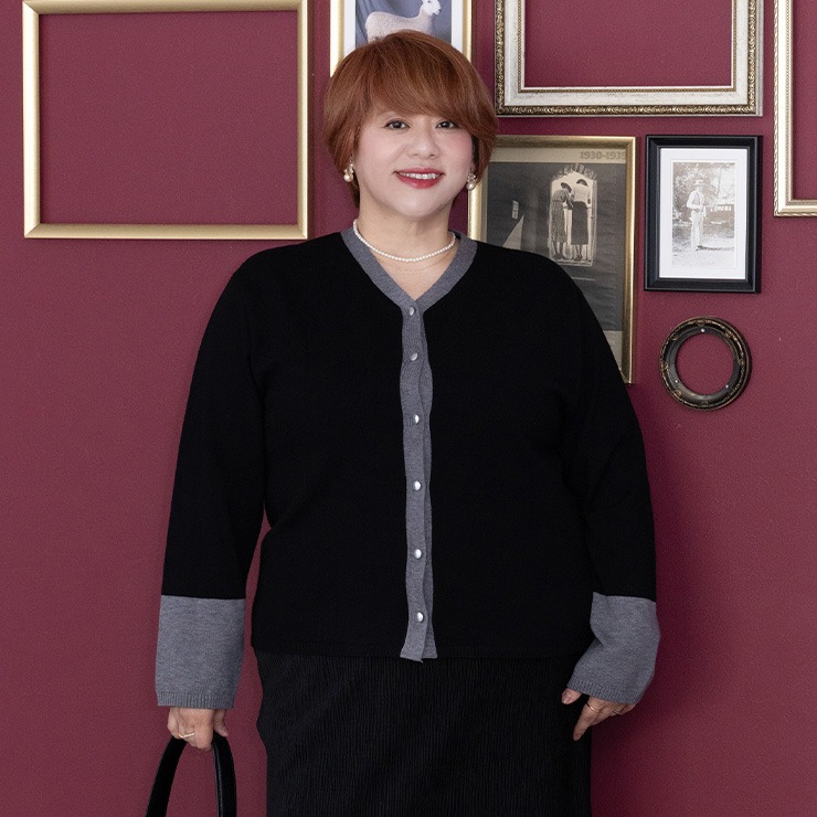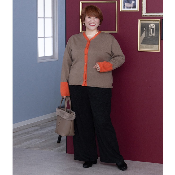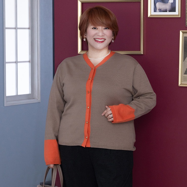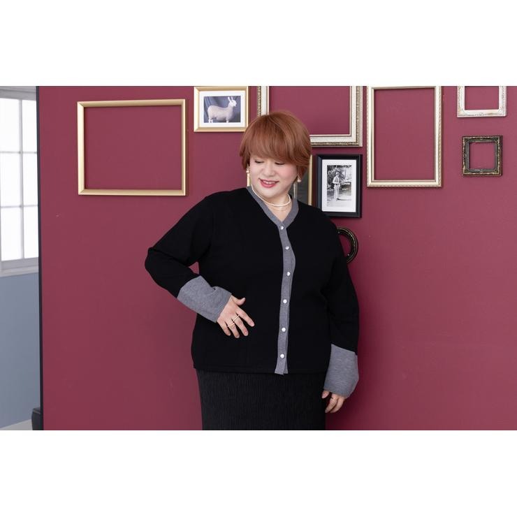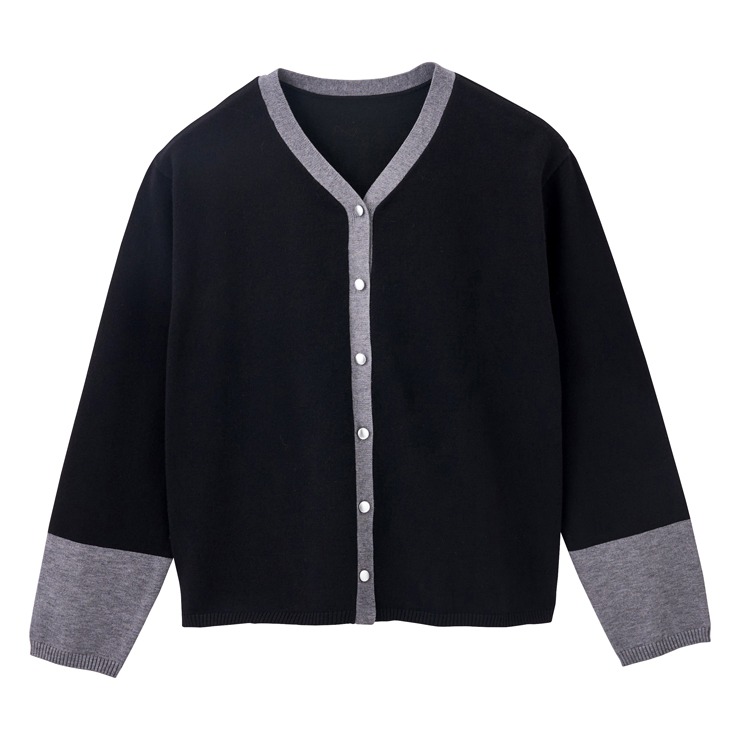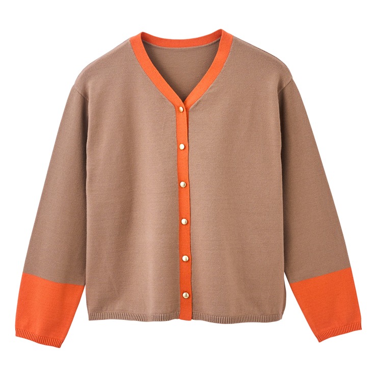 ネックから前立て、袖の配色がポイントのニットカーディガン。