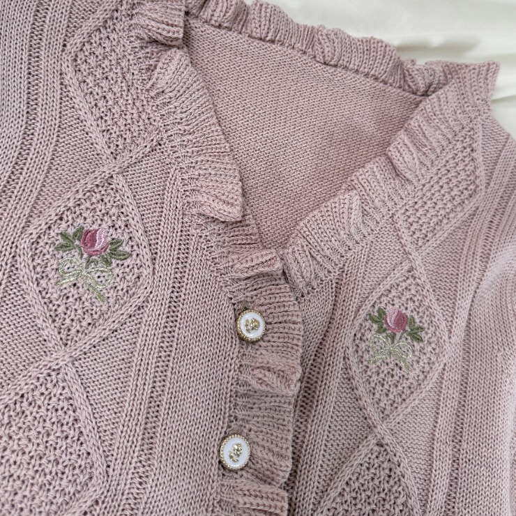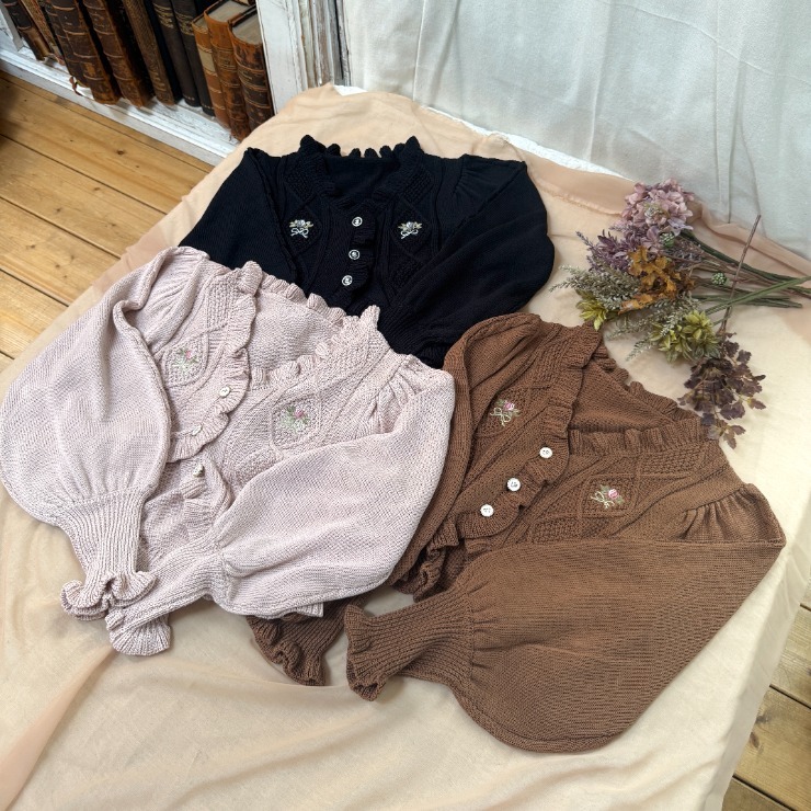 レディース バラ刺繍ニットカーディガン(愛野えり)