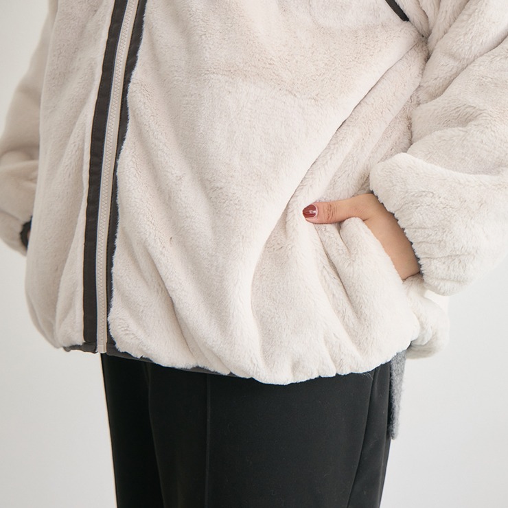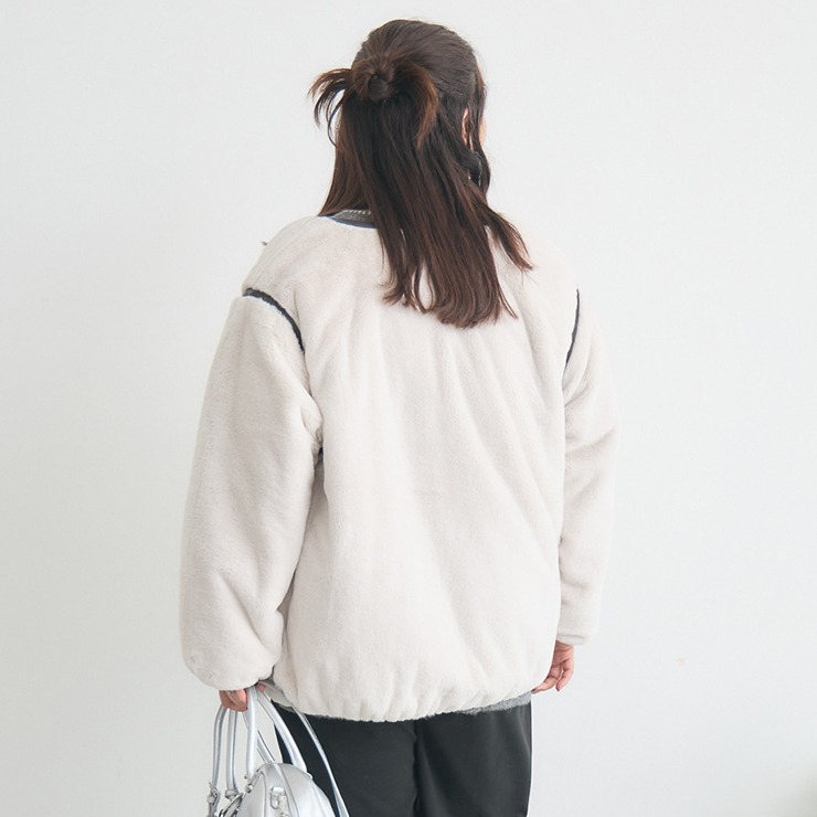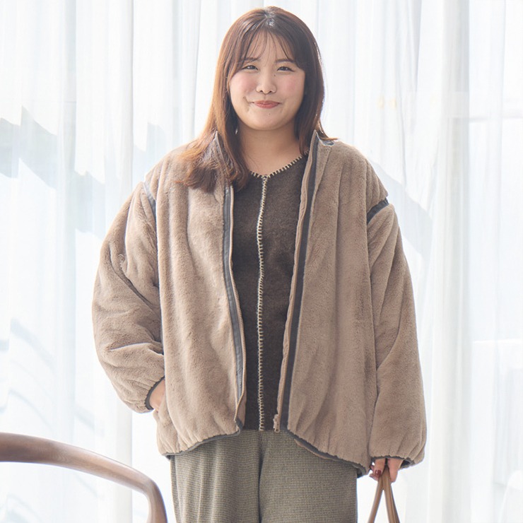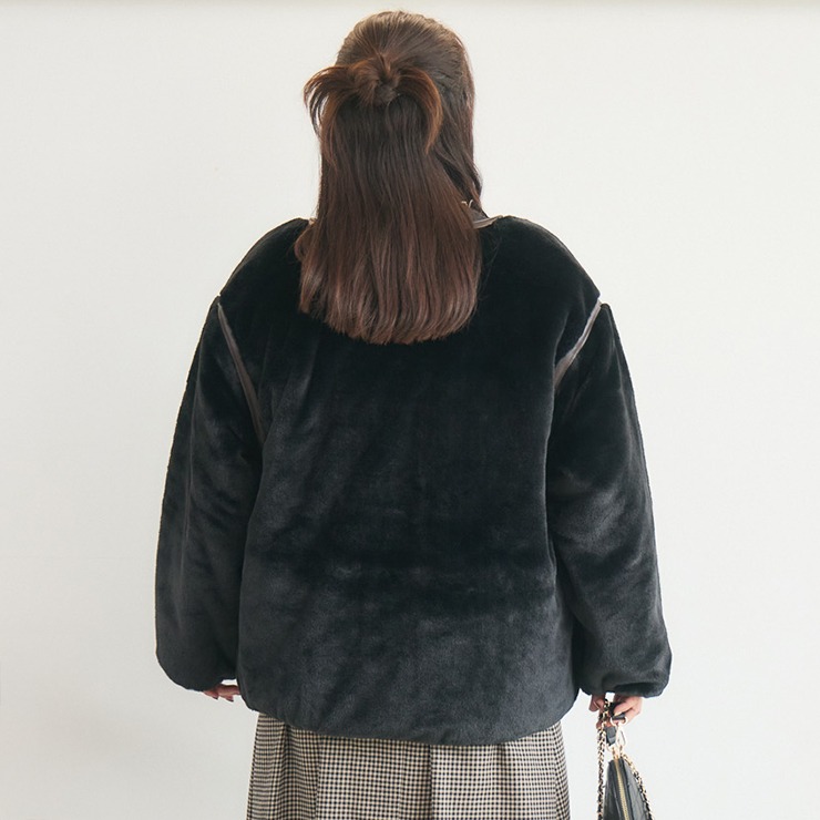 ファー部分には合皮のパイピングがデザインアクセントになってます。