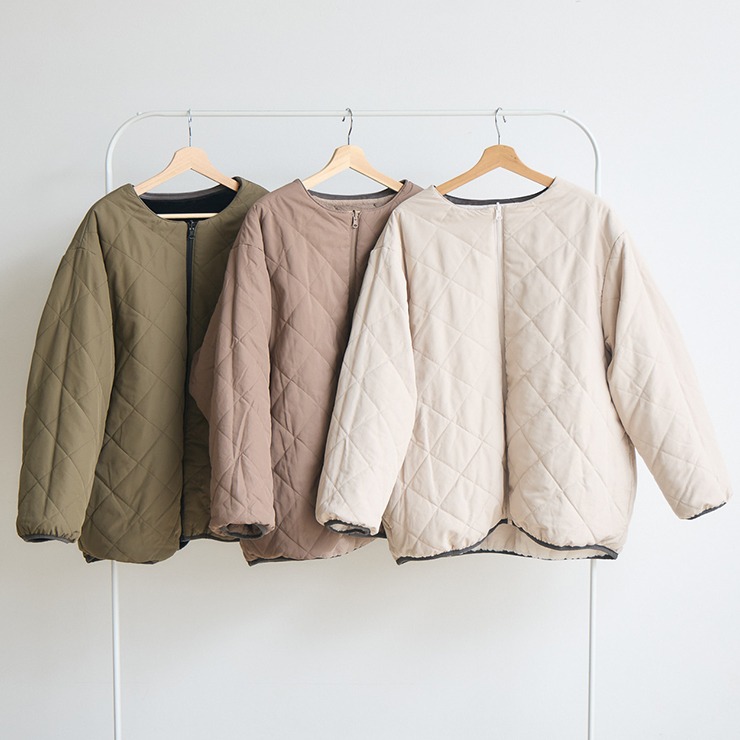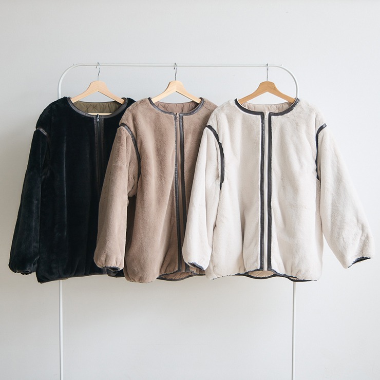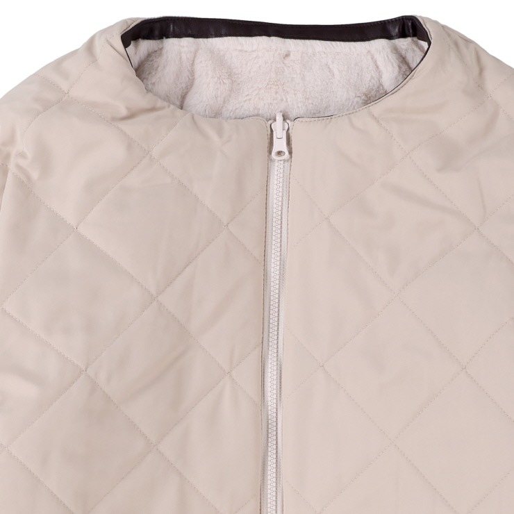 肌触りの良いファーとキルト生地とのリバーシブルブルゾンです。
