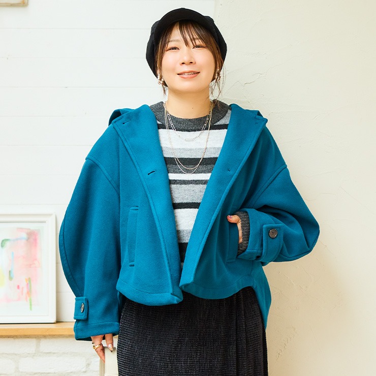 パンツにもスカートにも合わせやすい丈感で、ちょっぴりキレイ目コーデとも