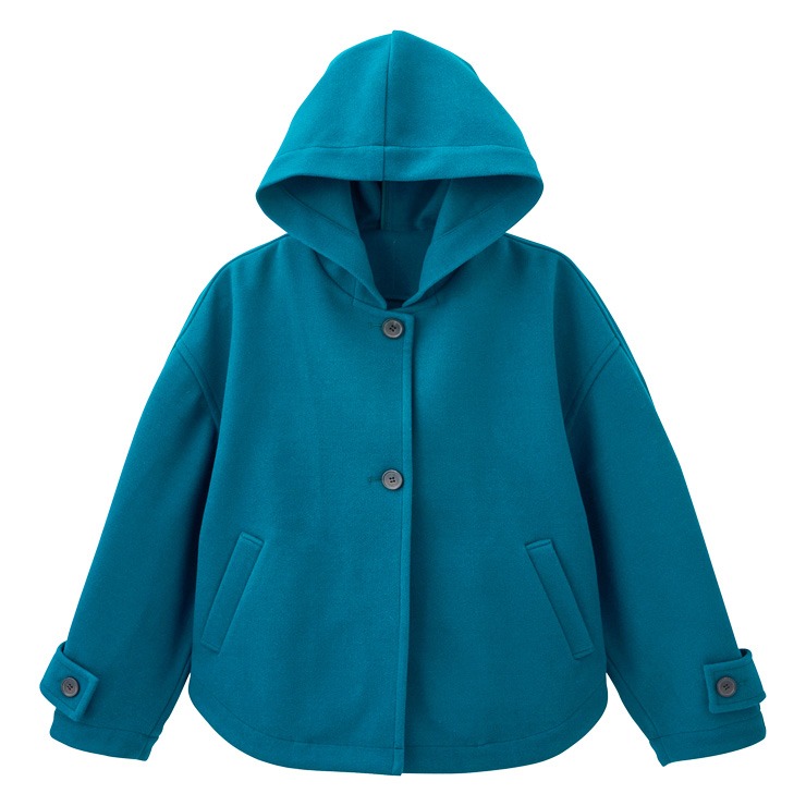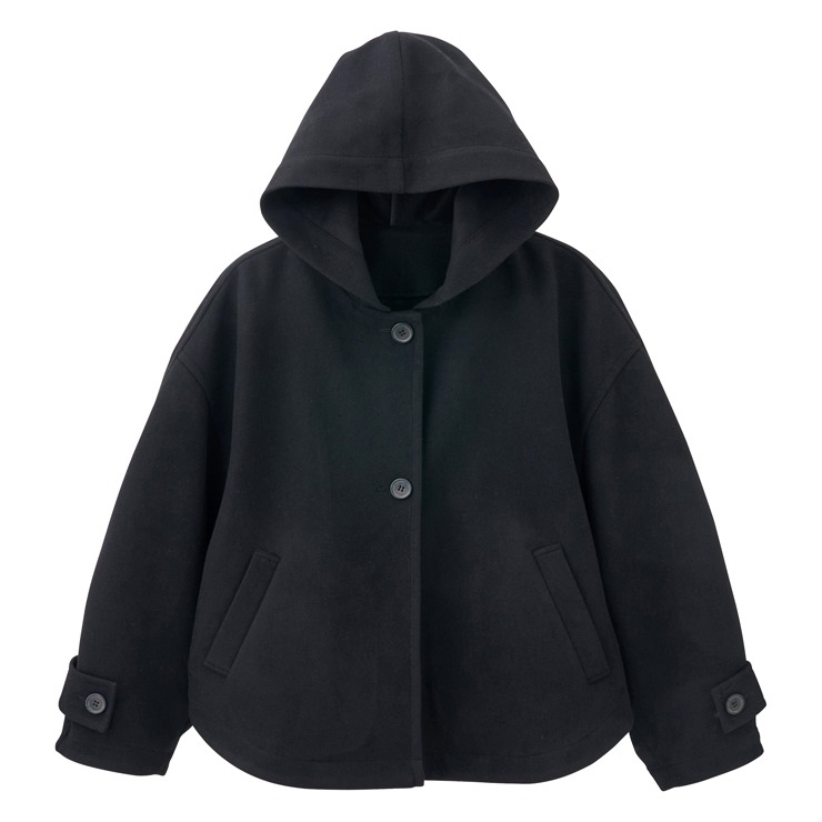 コロンとしたシルエットがかわいいフェイクウールコート。