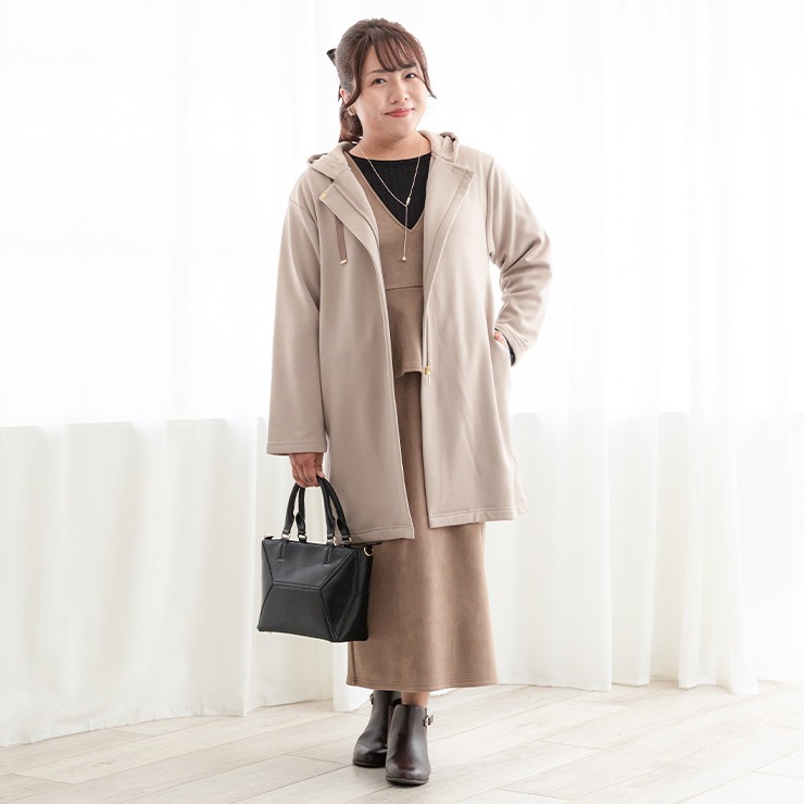 程よく伸びて快適な着心地。裏起毛でしっかり暖かいのに軽いです。さっと羽織れて楽ちんなコートです。