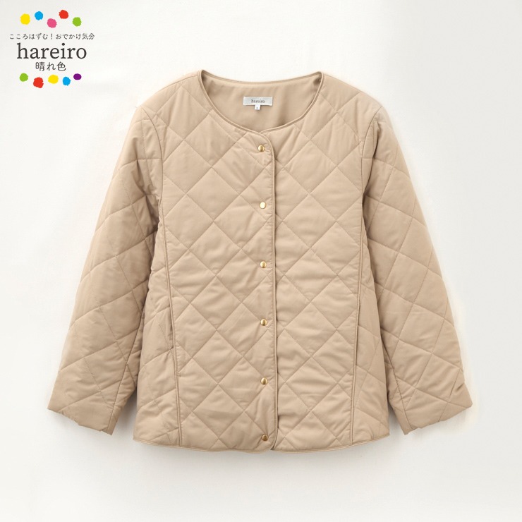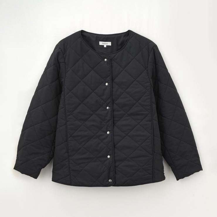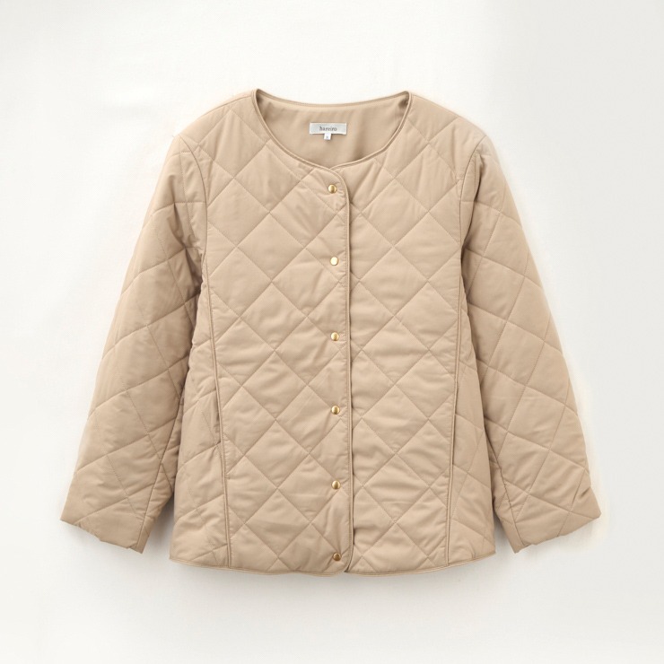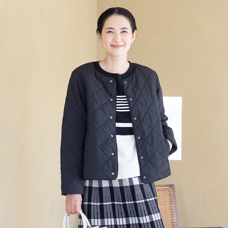 ノーカラーのスッキリしたデザインで、インナーを選ばず
