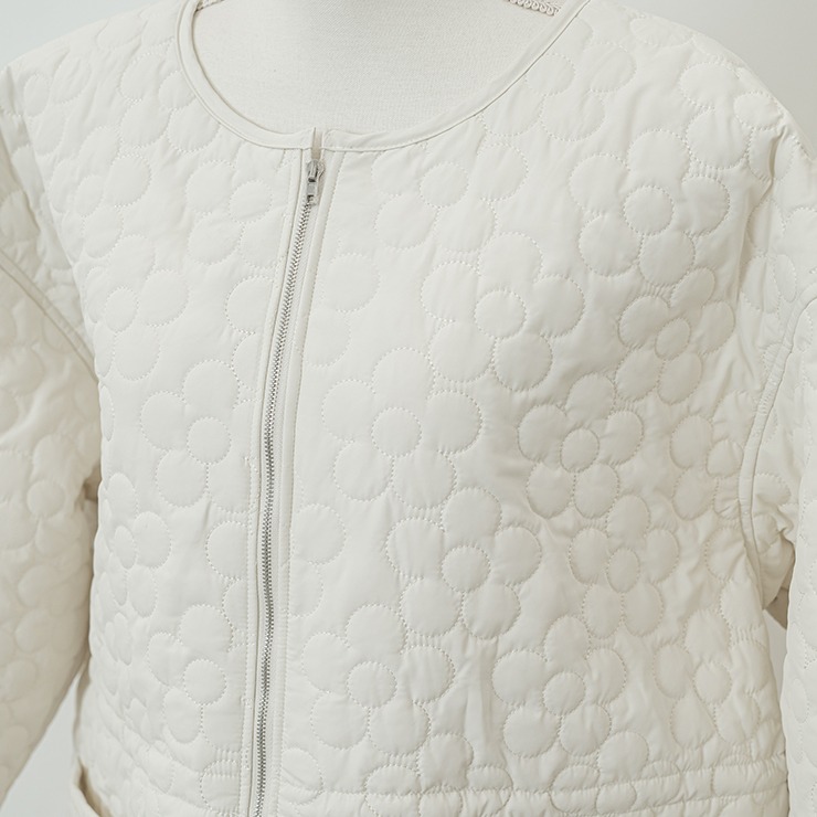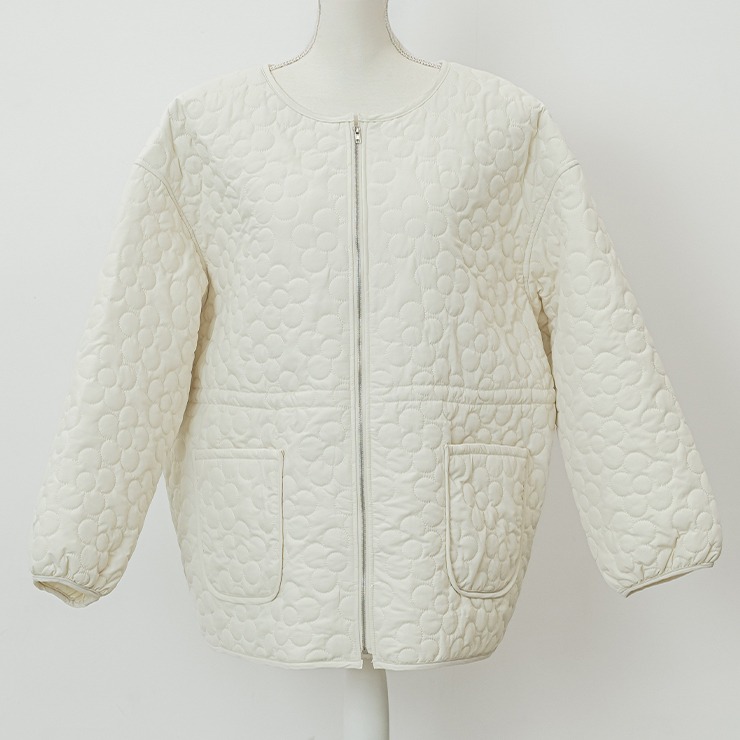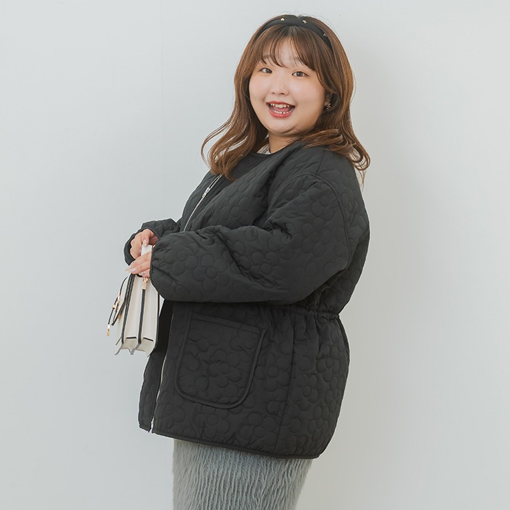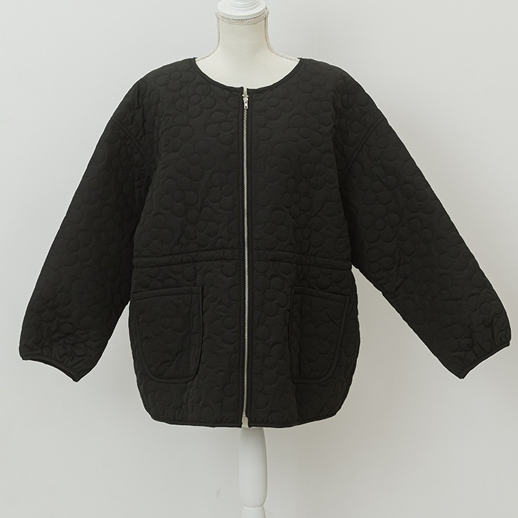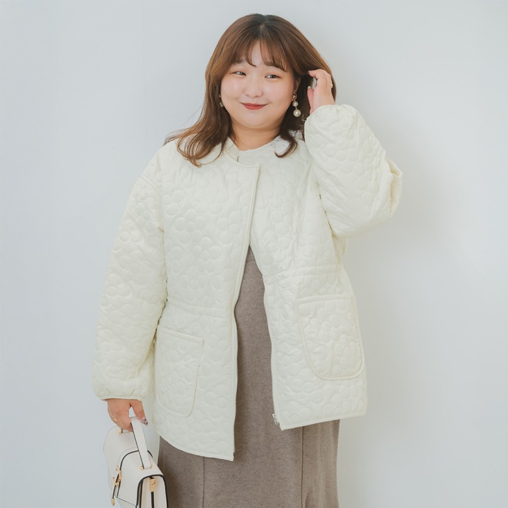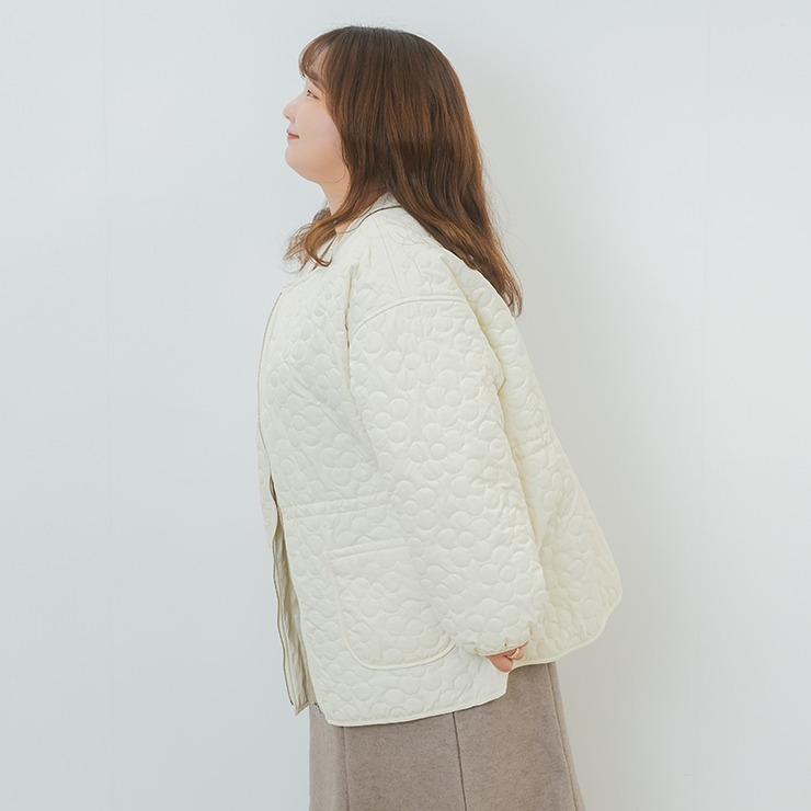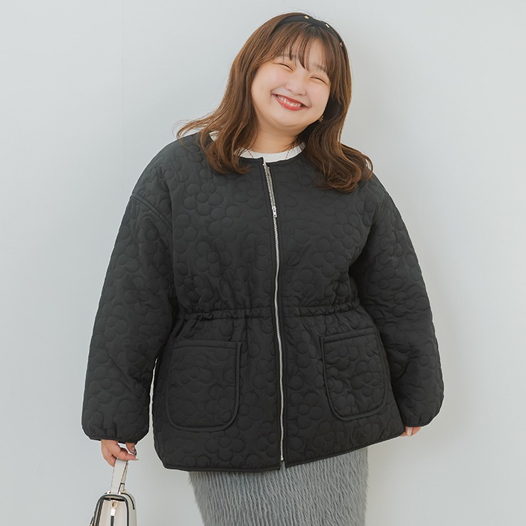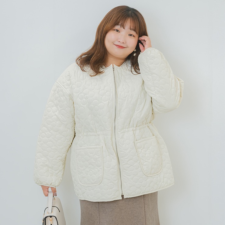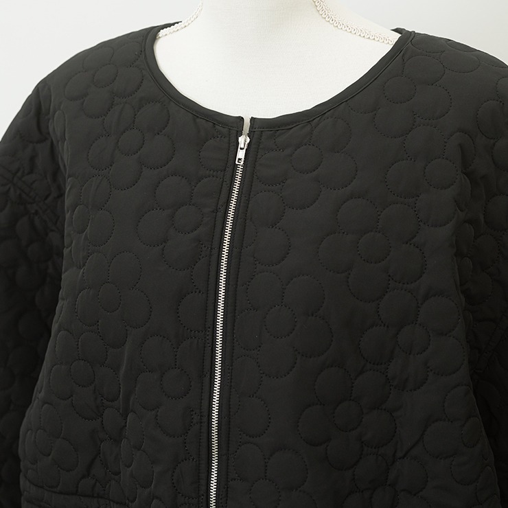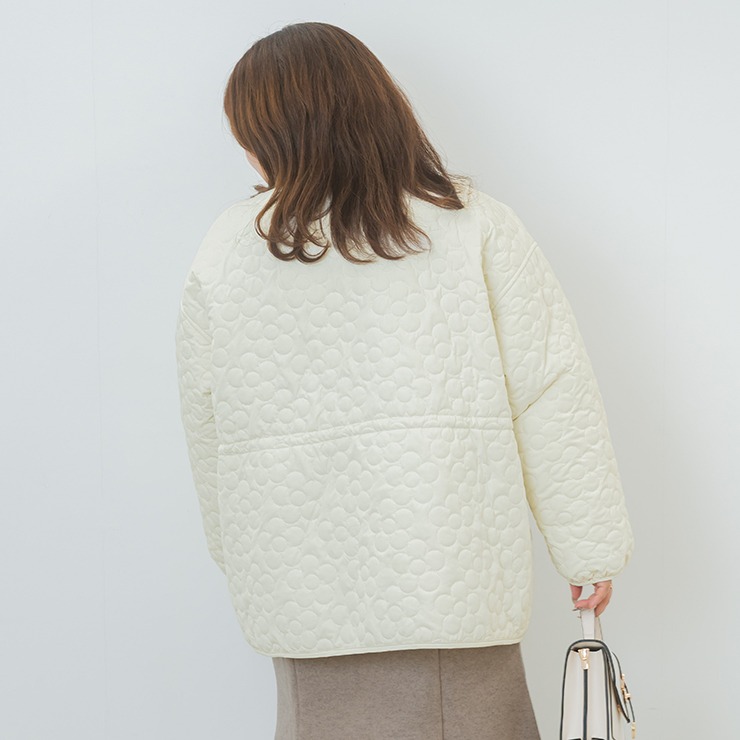 ふんわり軽い着心地の 花柄キルト薄中綿ブルゾン。