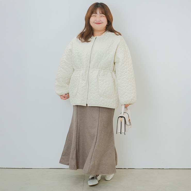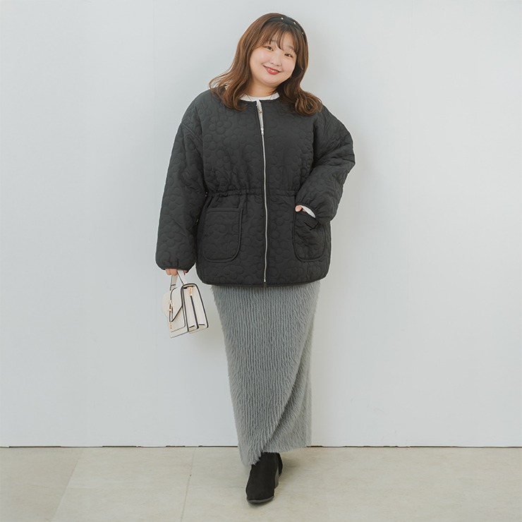 中綿入りで軽やかに羽織れるのに、程よい暖かさをキープ。両ポケット付きで実用性も◎。