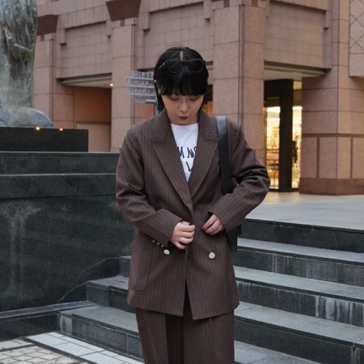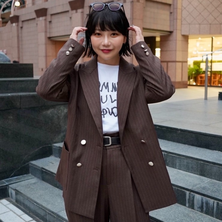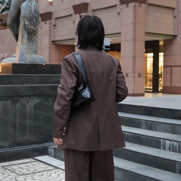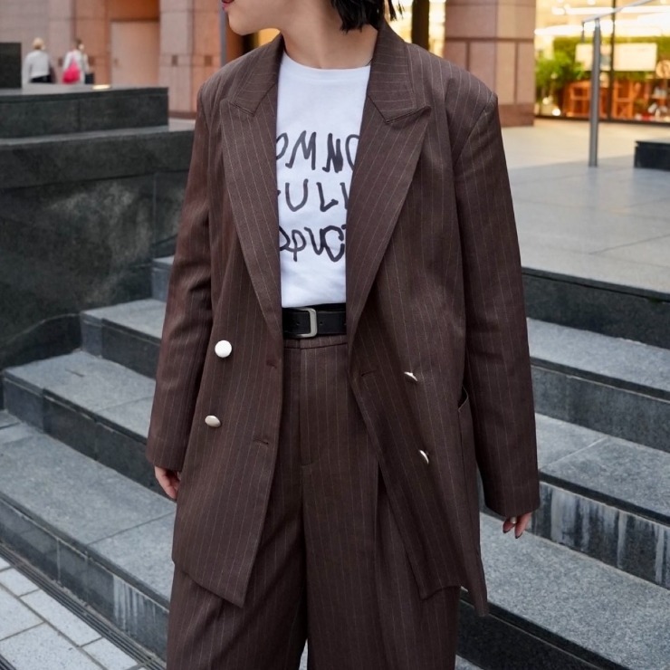 羽織るだけで一気にモードな雰囲気になるストライプジャケット。