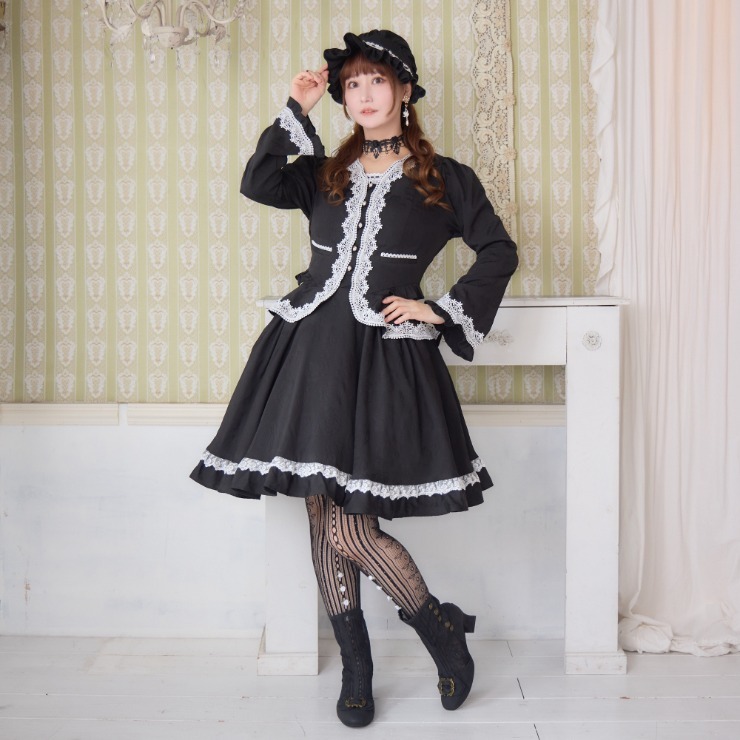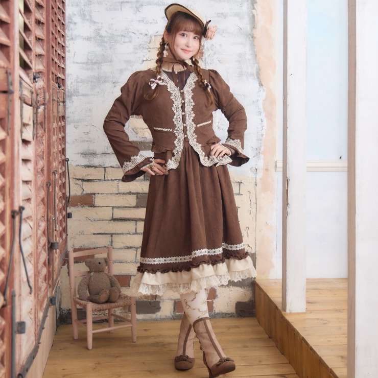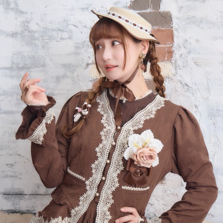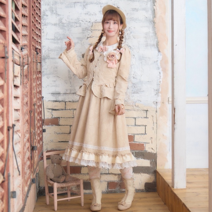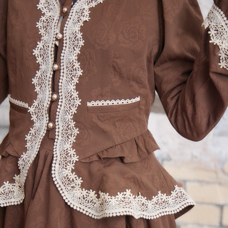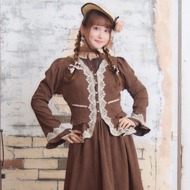 クラシカルな雰囲気のある配色と花柄ジャカード生地がかわいいジャケット。