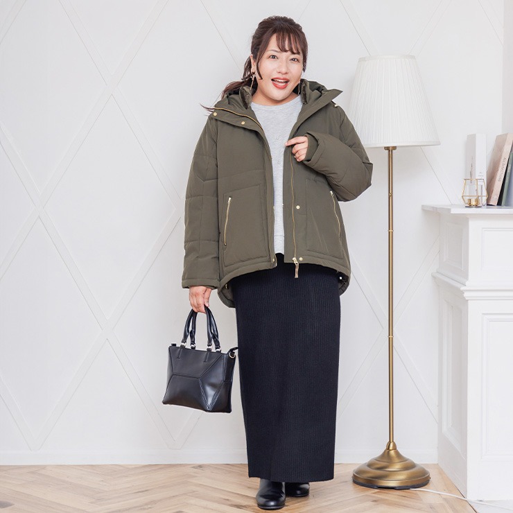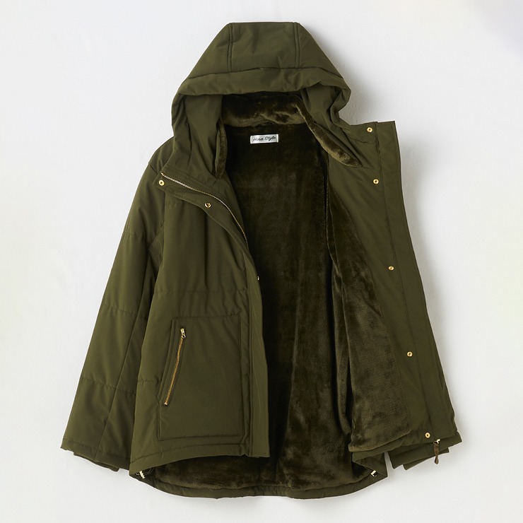 真冬でも暖かく快適に過ごせる中綿ジャケット。首元はスタンドカラーにフード付きで、冷たい風をしっかりガード。さらに袖口はリブ仕様になっており、冷気の侵入を防ぎます。実用的なファスナー付きポケットは小物を安心して収納できるだけでなく、ゴールドのアクセントがスタイリッシュな印象をプラス。暖かさ、機能性、スタイルアップを兼ね備えた冬のワードローブに欠かせない万能アウターです。