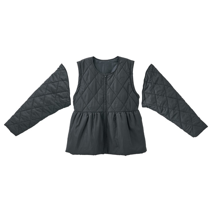 袖取り外し可能な、2wayペプラムキルトジャケット。