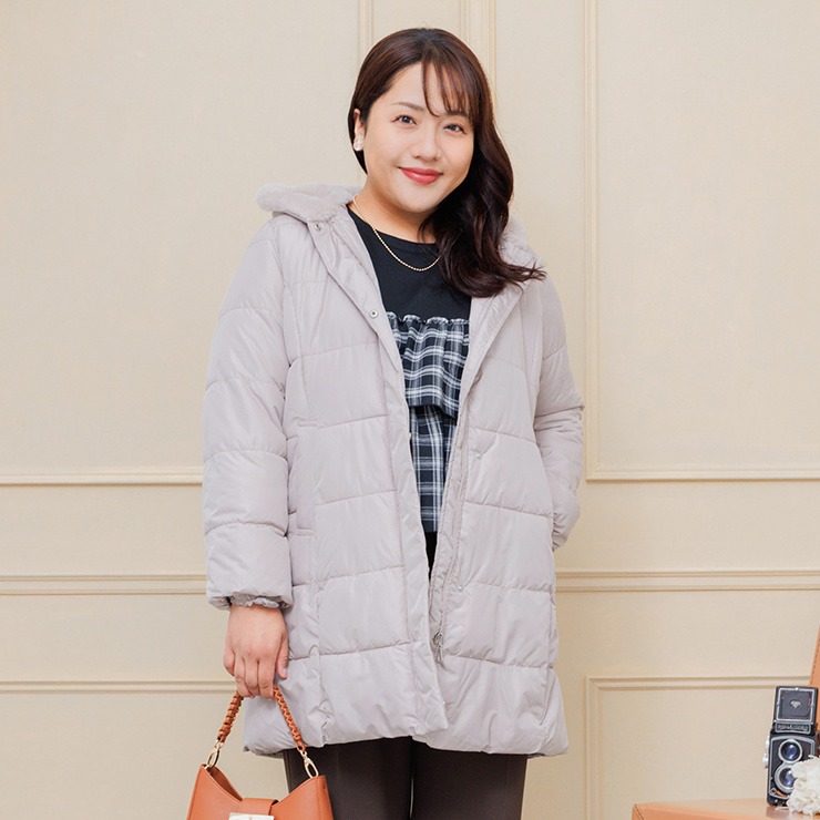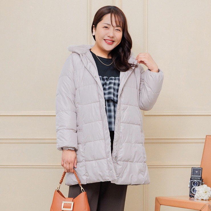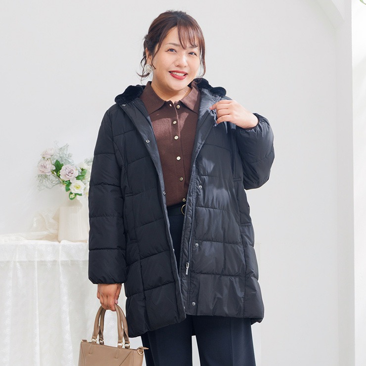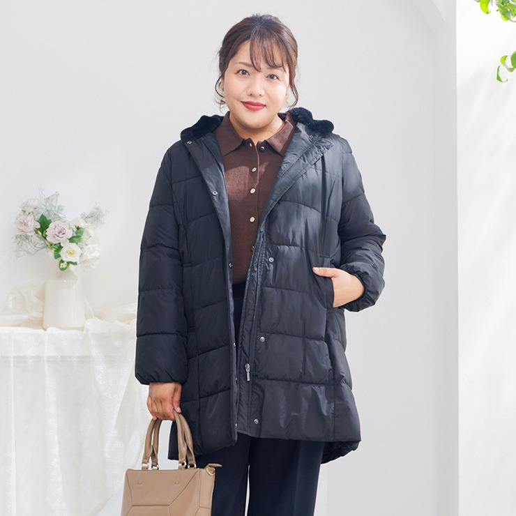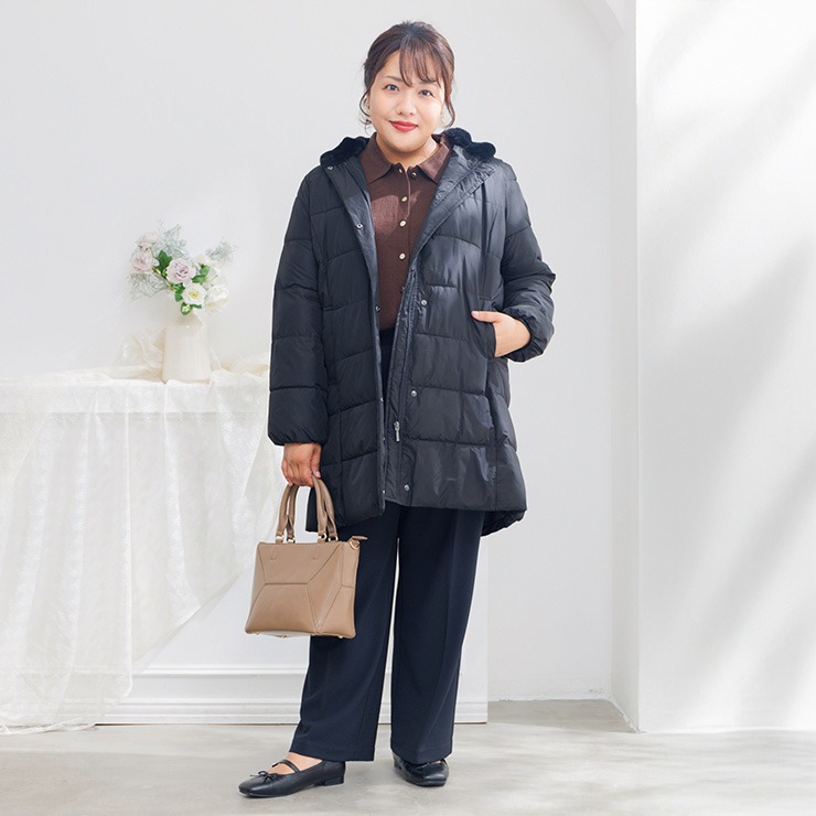 上品な光沢とふんわり軽い着心地が魅力のミドルコート。ふっくらとした中綿入りで真冬の冷たい風からしっかりと身体を包み込みます。大きめの襟は首元まで暖かく、顔まわりを優しく華やかに見せてくれるデザイン。ヒップがすっぽり隠れる安心の丈感で体型カバー効果も◎軽くて動きやすいので、普段のお出かけやお買い物にピッタリです。