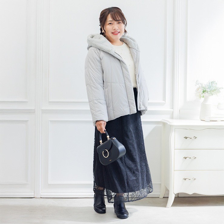 ふんわりとしたボリューム感が魅力の中綿ジャケット。暖かみがありながらも軽やかな着心地で寒い季節のお出かけを快適にサポートしてくれます。大きめのフードは小顔効果が期待できるだけでなく、首元まで暖かく包み込んでくれるデザイン。程よい丈感で体型をカバーしつつ、すっきりとしたシルエットを演出できるのもポイントです。