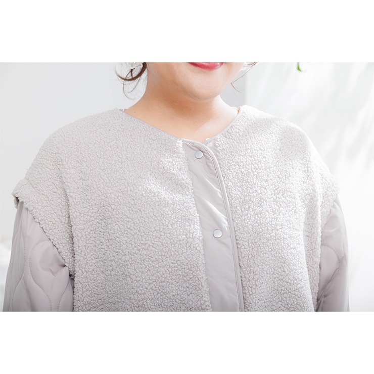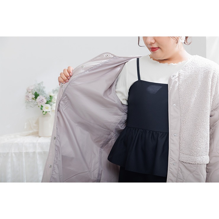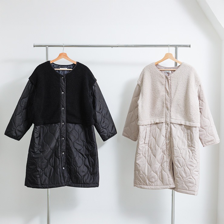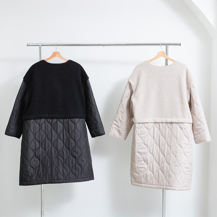 キルティングとボアの異素材組み合わせでシンプルながらもおしゃれに見える一枚です。軽やかな着心地ながらしっかり暖かく、秋口から春先までロングシーズンで活躍します。パンツにもスカートにも合わせやすく、お出かけやご近所スタイルにもぴったり。落ち着いたカラー展開でどんなシーンにも馴染みます。