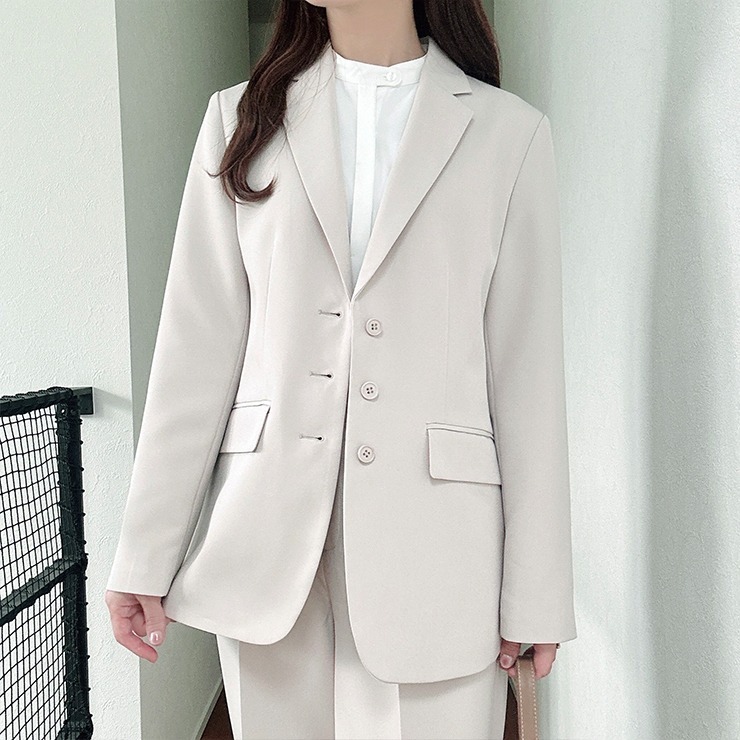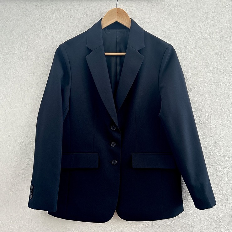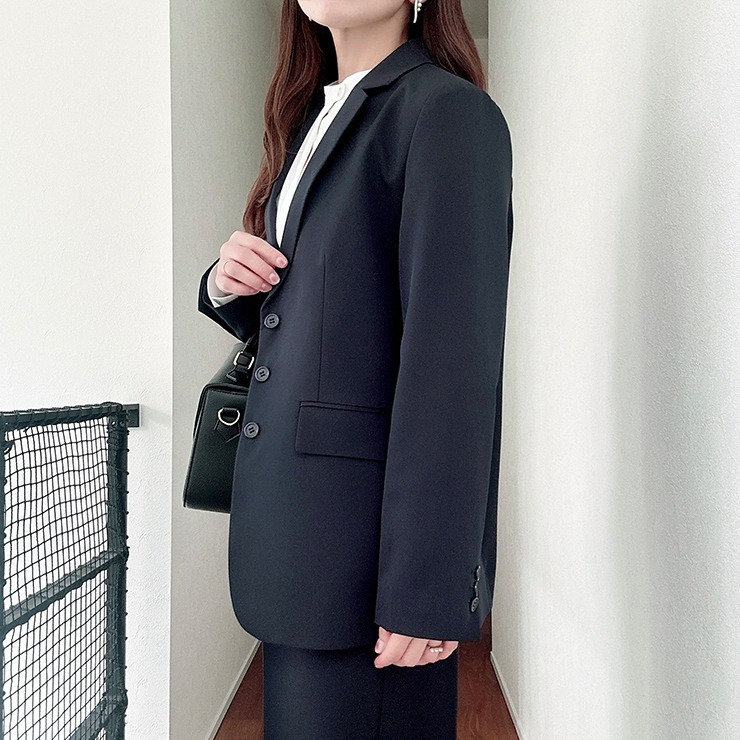 ボタンを3連にして堅くなりすぎず、抜け感を与えるデザインがポイントです。