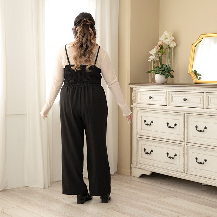 バックはシャーリング仕様で、フィット感がありつつ着心地ラクちん。