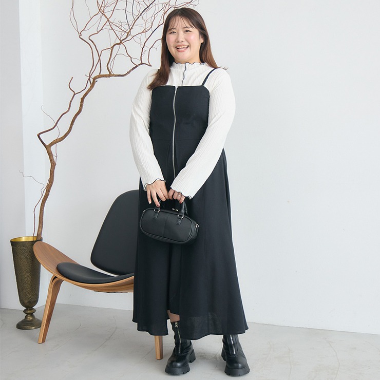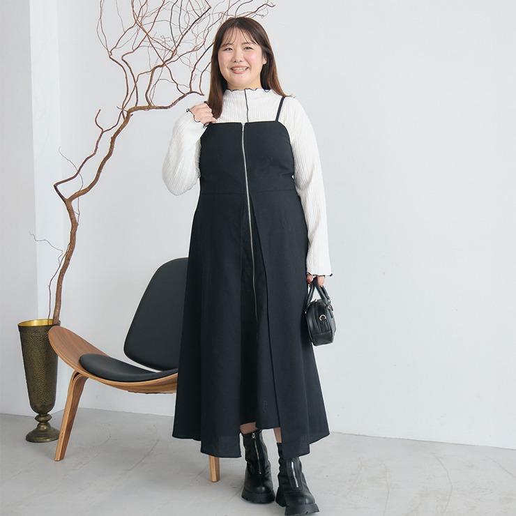 中央のジップがデザインアクセントのキャミワンピースです。