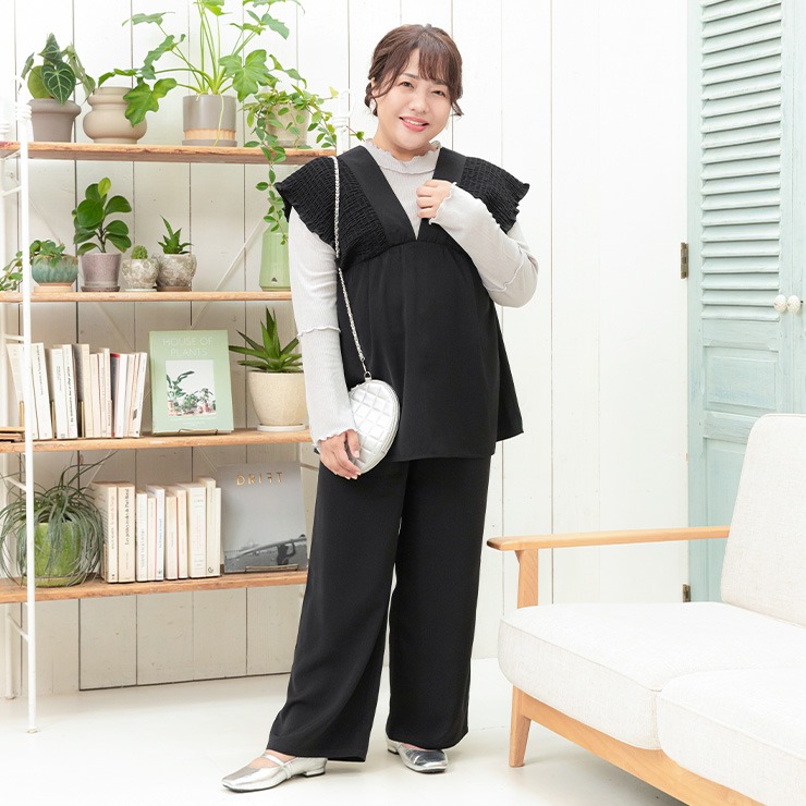 パンツはウエストはゴム仕様なのでリラックスして着用いただけます。