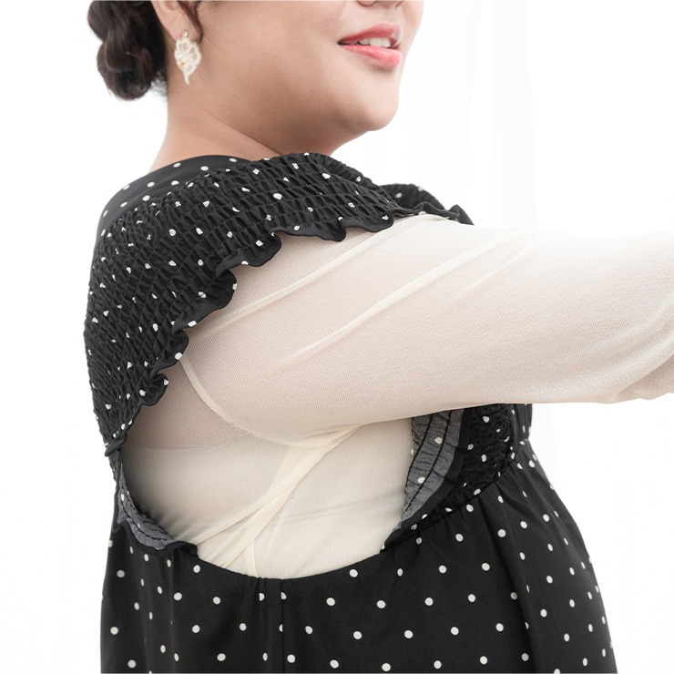 ビスチェは裾がフレアシルエットになっており女性らしい印象に。