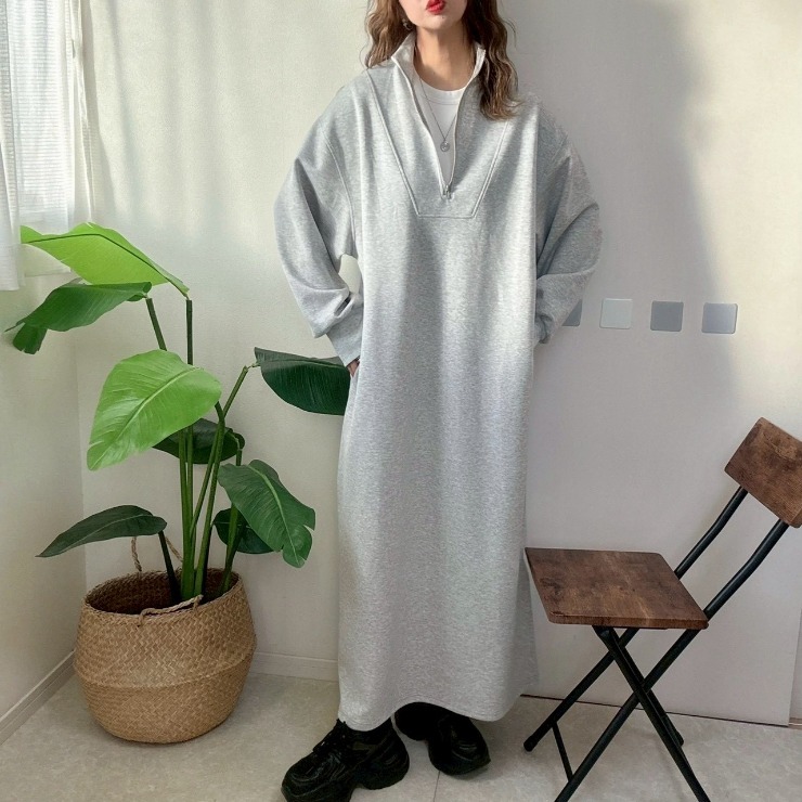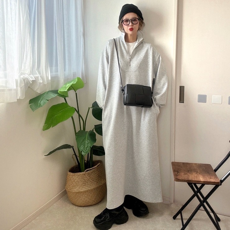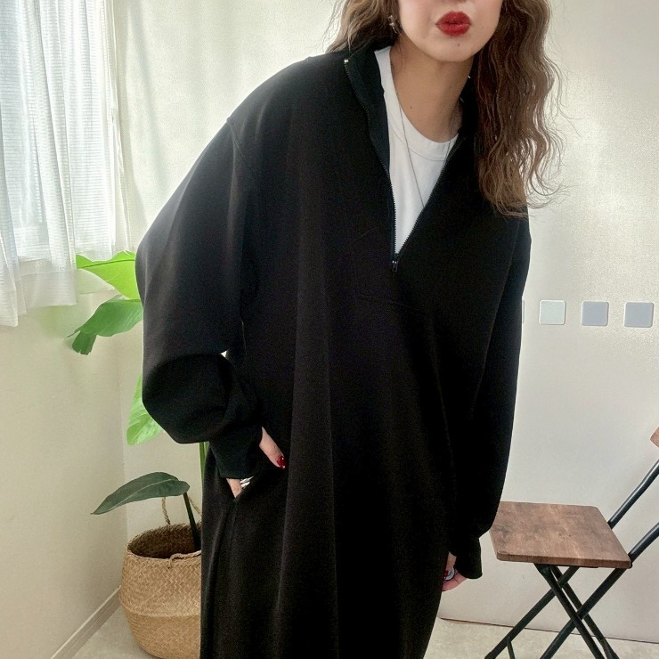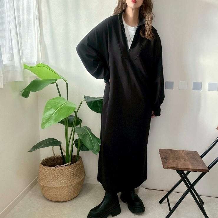 着るだけでおしゃれ見え、旬のハーフジップワンピース。