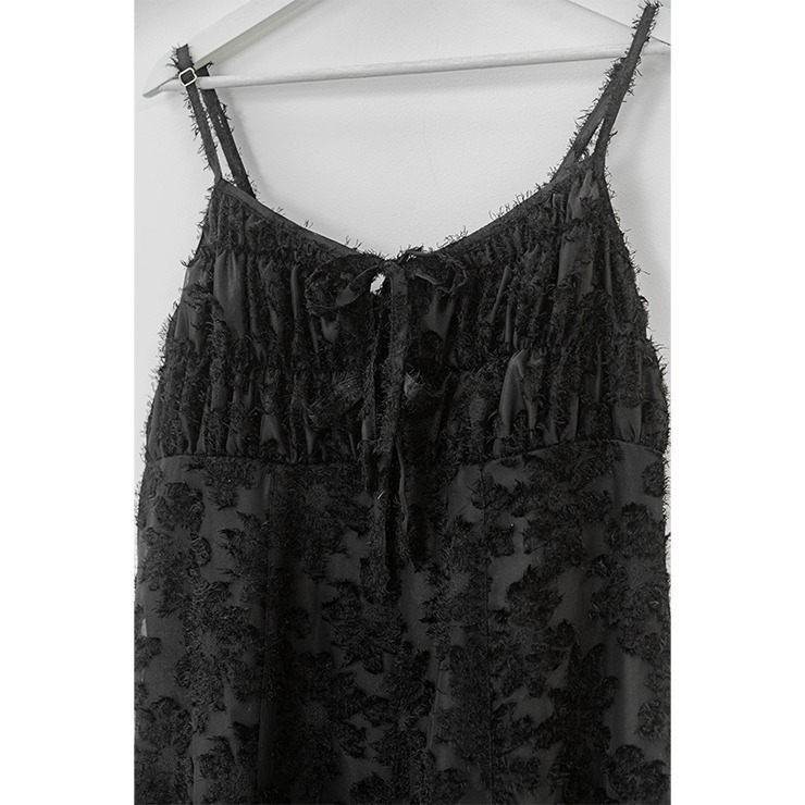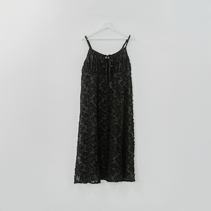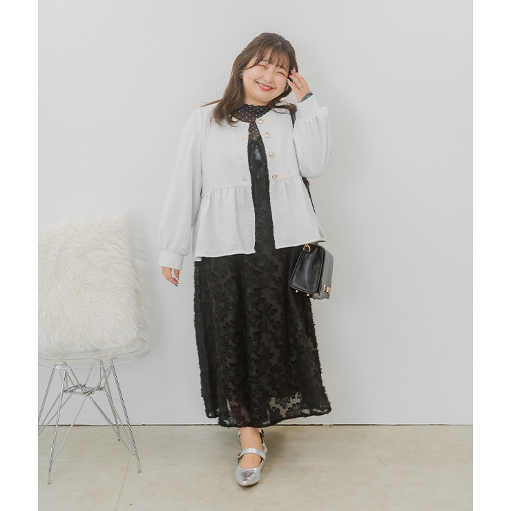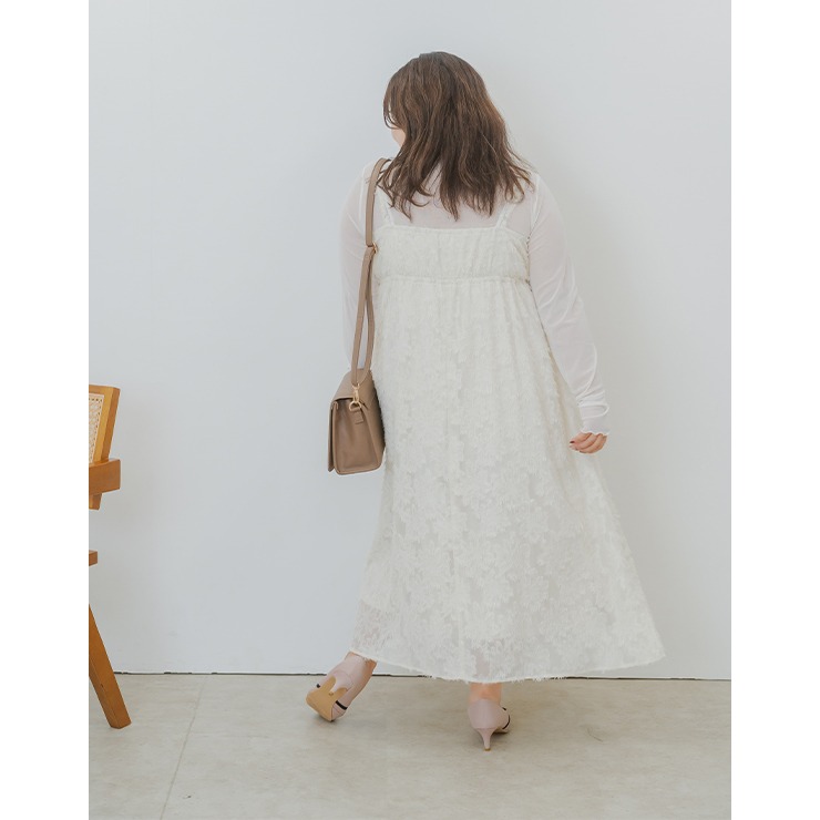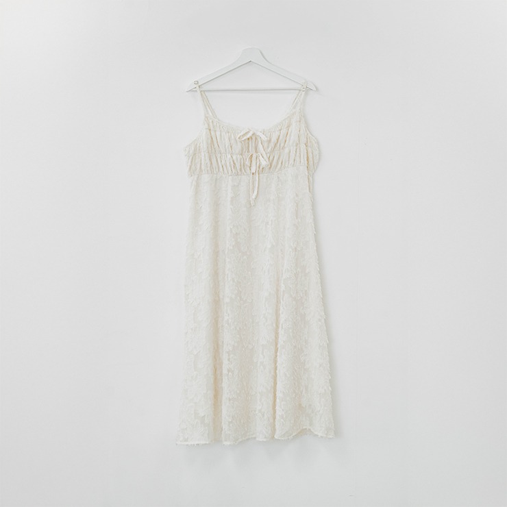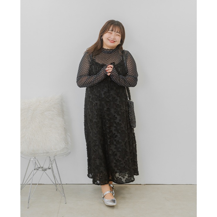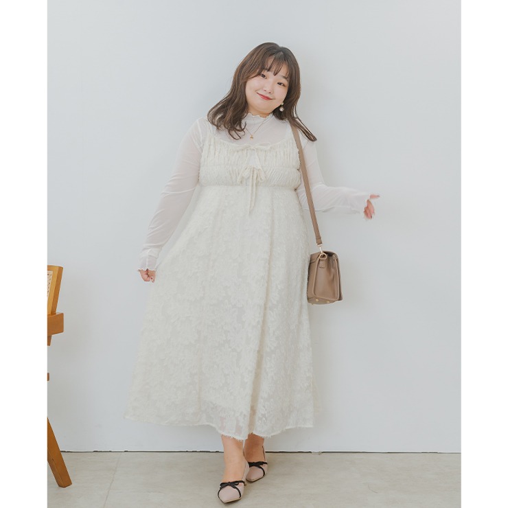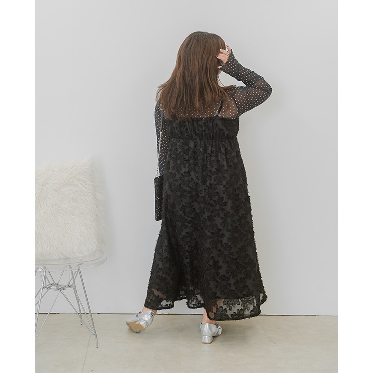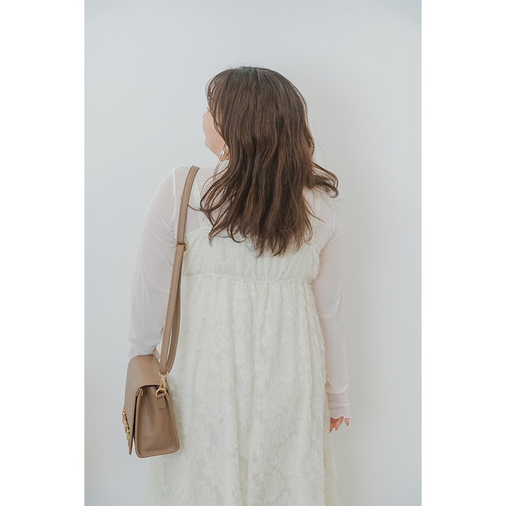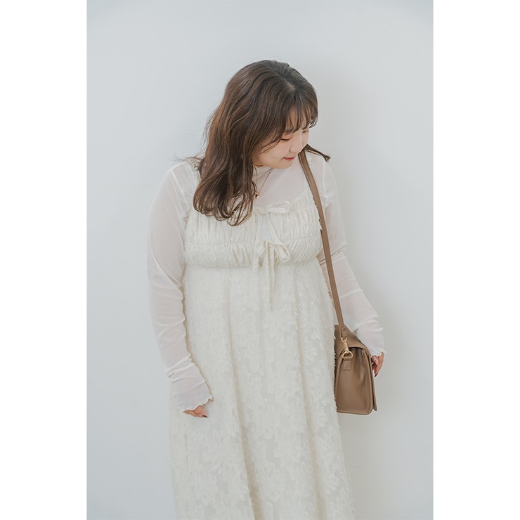 ふわっとしたフェザー調の生地が華やかに映えるワンピース。