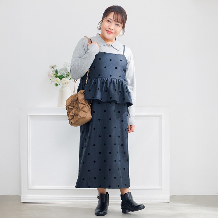レディース ペプラムドットジャンパースカート(Hina)